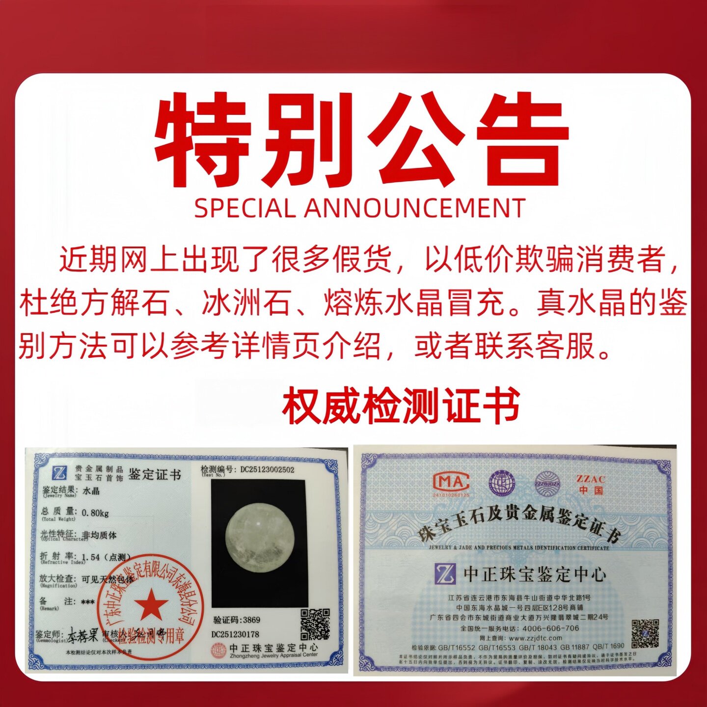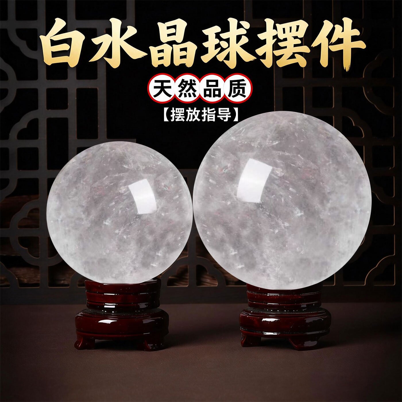 天然白水晶球摆件官方旗舰店真水晶原石打磨厨房客厅白色装饰摆件