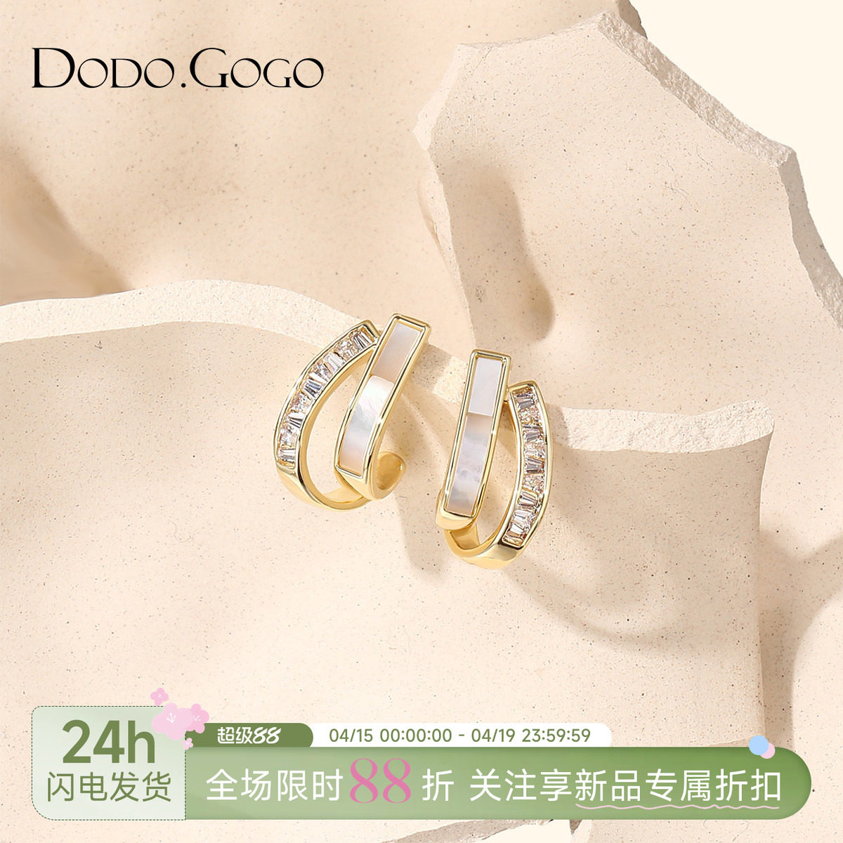 DODOGOGO双层贝壳耳钉女士气质耳夹2026新款耳环高级感轻奢耳饰品