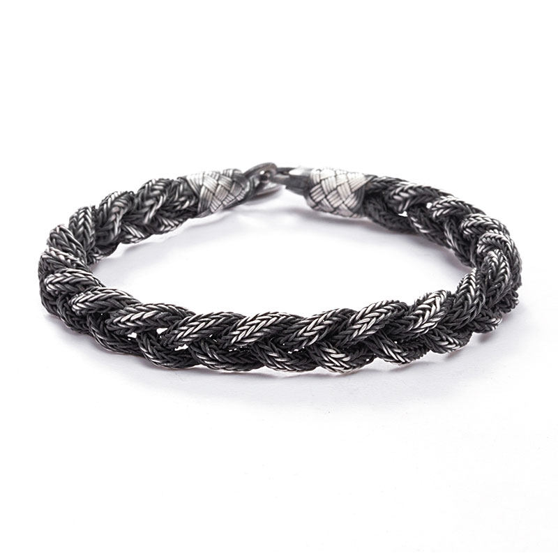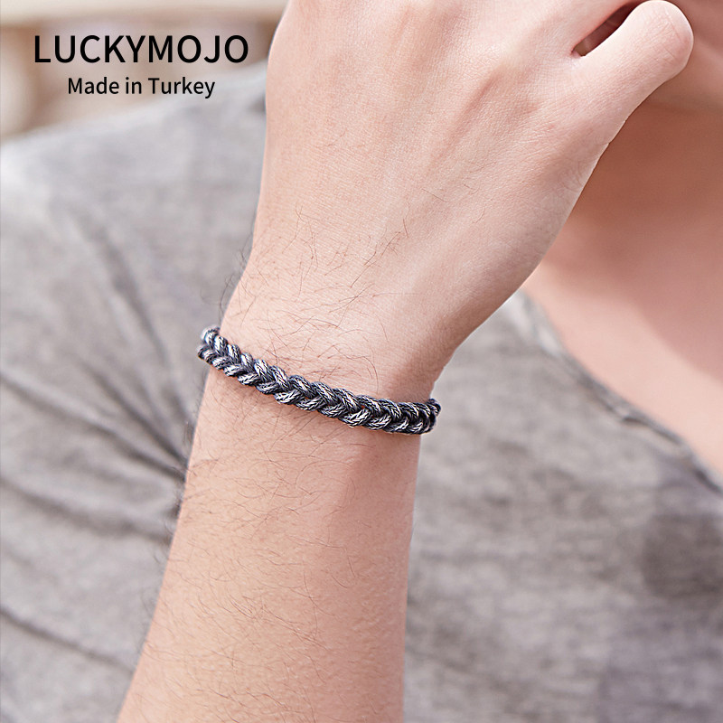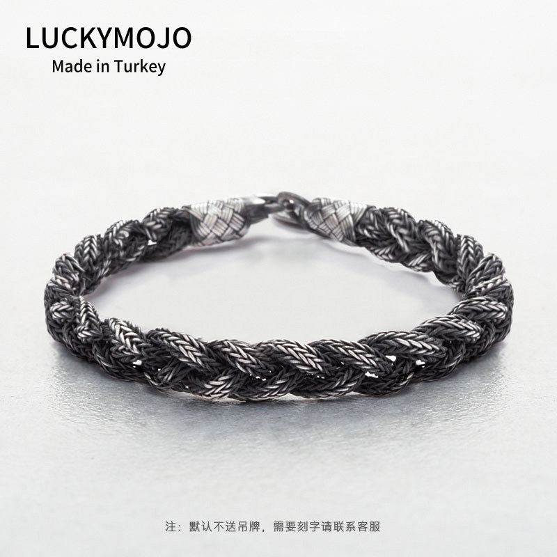 土耳其编织手链纯银男款小众复古黑不褪色银手绳情侣礼物送男生