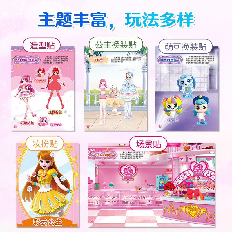 全新奇妙萌可趣味时尚换装书全2册 缤纷乐园甜心派对换装贴di贴纸 萌可公主造型场景装扮换装贴主题丰富玩法多样儿童礼物益智玩具
