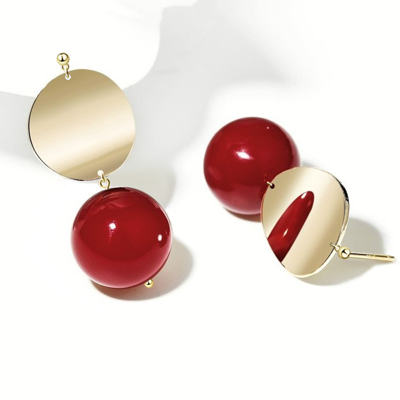 防过敏 925纯银针大红色耳环女气质百搭耳钉配饰品日韩国简约耳坠