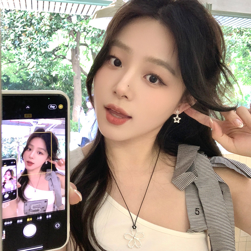韩系爆闪锆石简约精致星星耳钉女轻奢高级感耳环气质大气耳饰耳夹