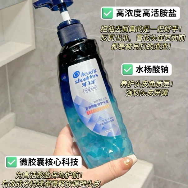 海飞丝专研去屑洗发水控油止痒洗头水液露止痒控油舒缓头皮无硅油