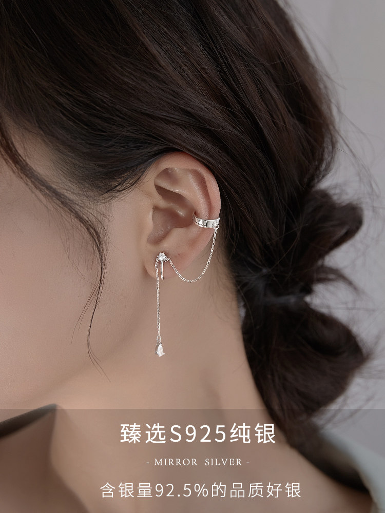 925纯银无耳洞福利简约耳夹流苏耳骨夹假耳钉耳环网红气质