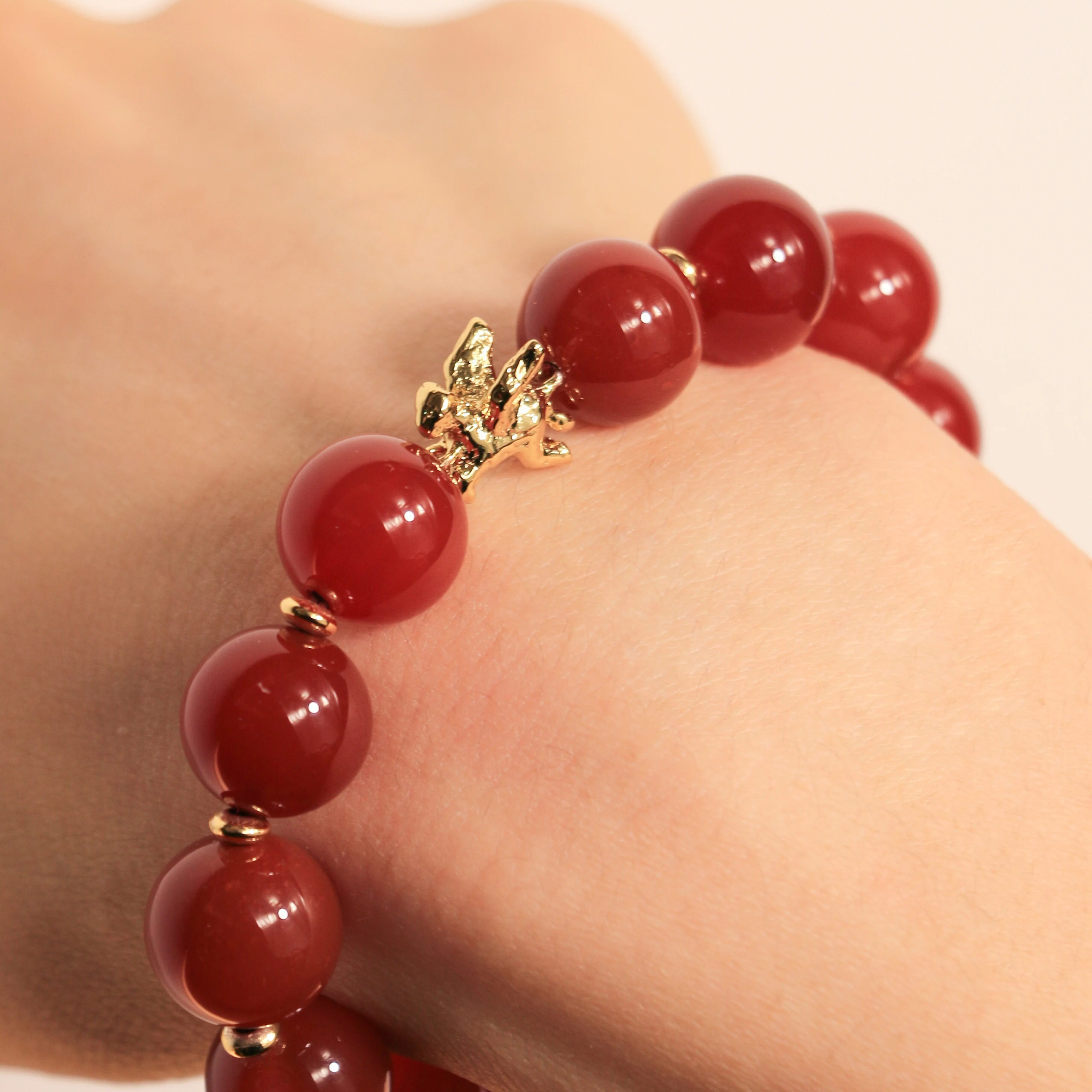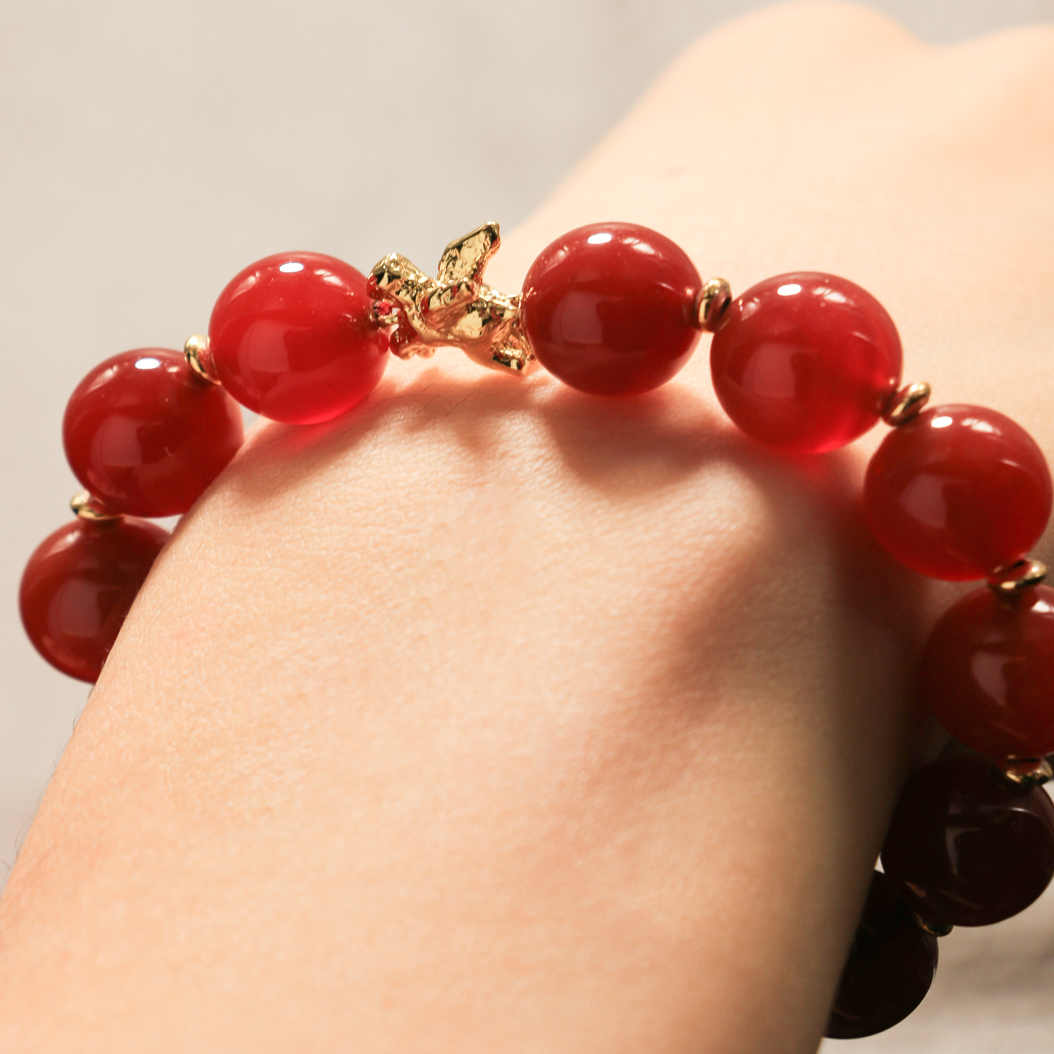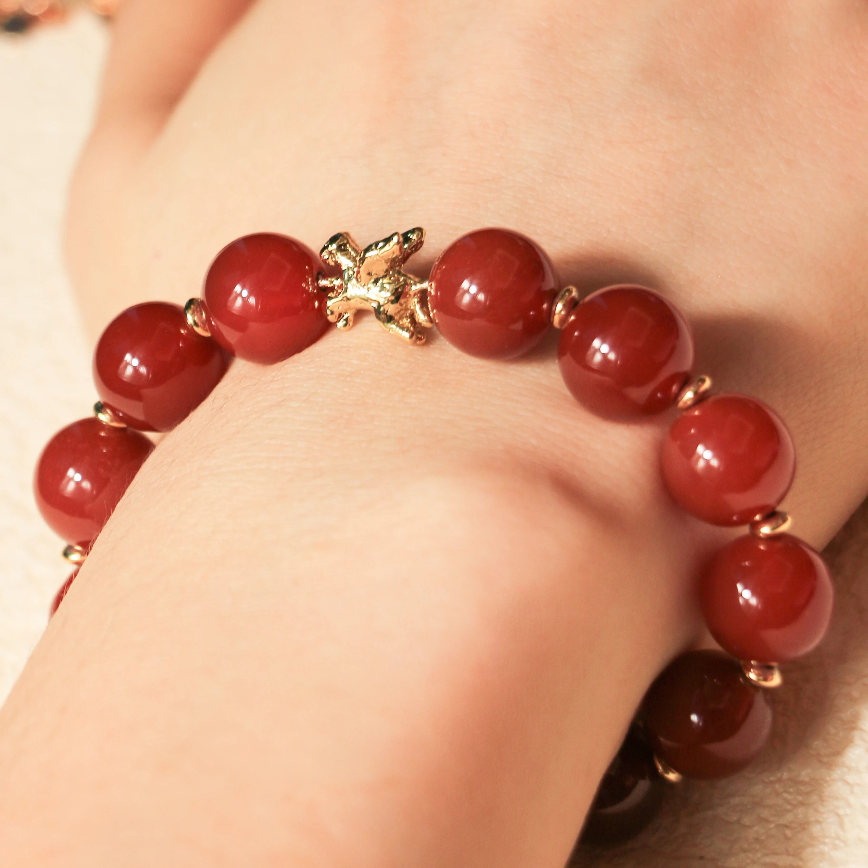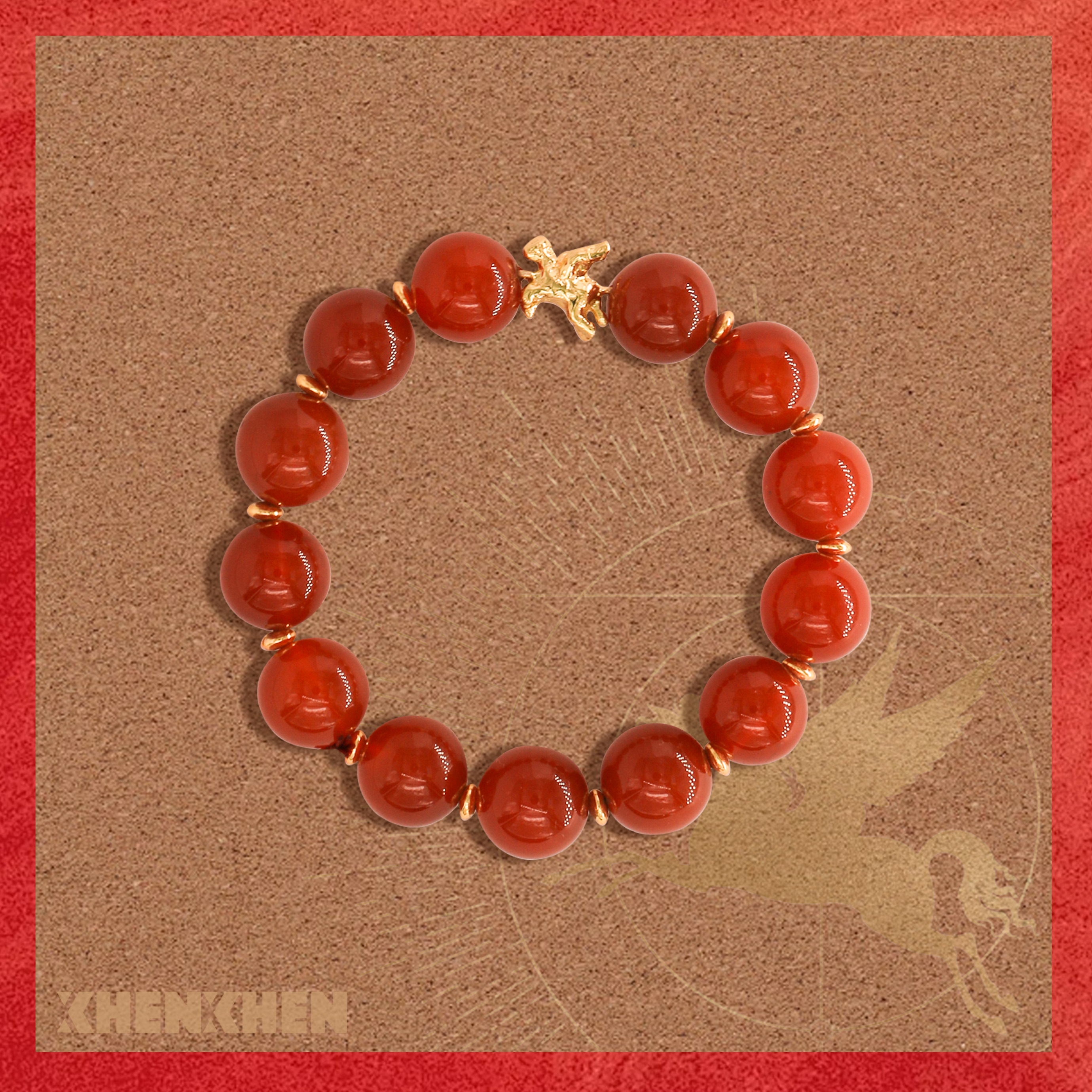 XHENXHEN天马赐福红玛瑙手串简约圆珠手链天然红色日常金色配件