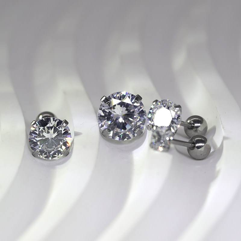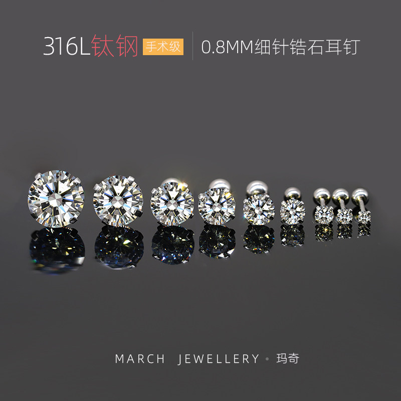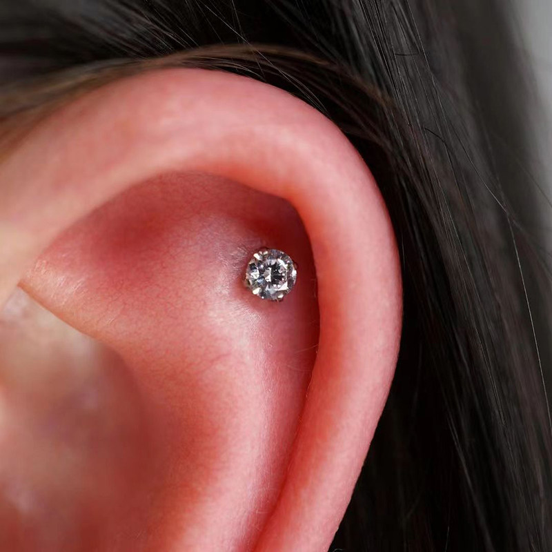 0.8mm细杆钛钢锆石耳钉小耳骨钉睡觉免摘防敏细针耳屏耳轮钉男女