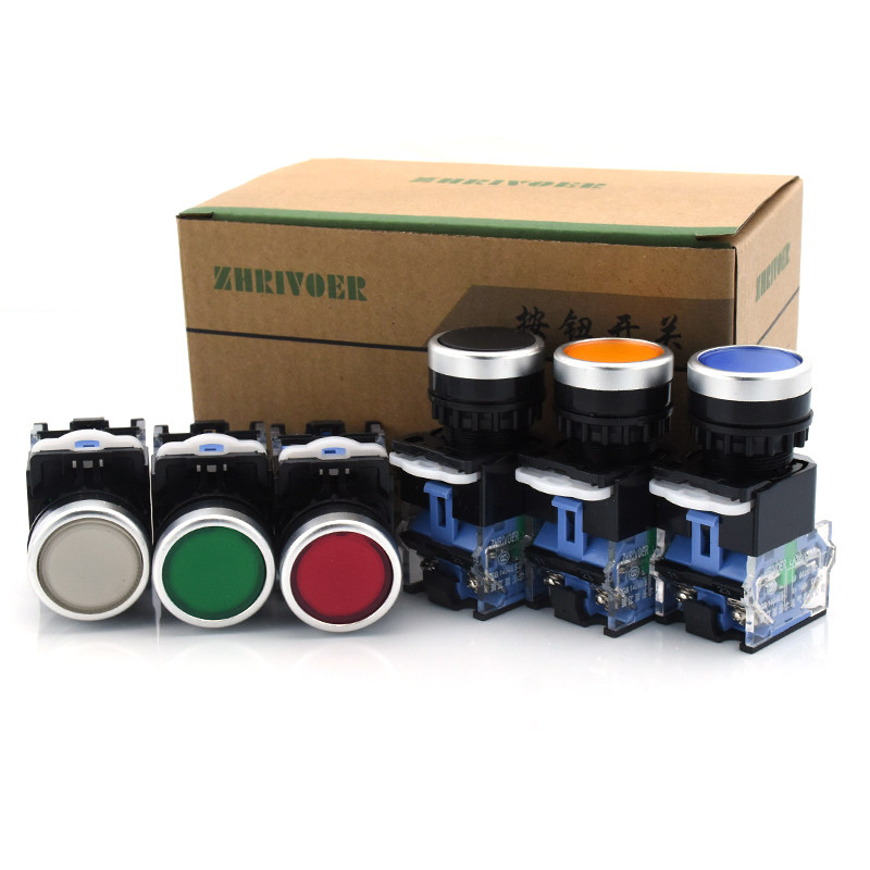 22mm孔径LA38-11BN按钮开关自锁复位点动配电箱柜圆形按键瑞沃尔
