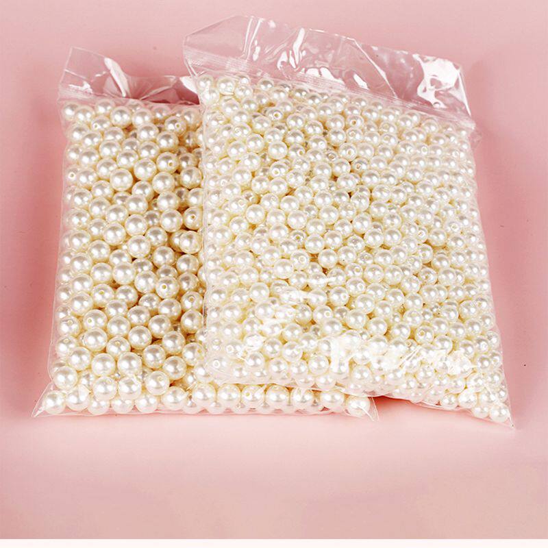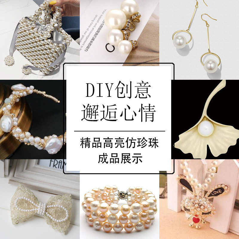 手工串珠耳环发饰diy手工珠子饰品 配件装饰有孔 双孔仿珍珠圆珠