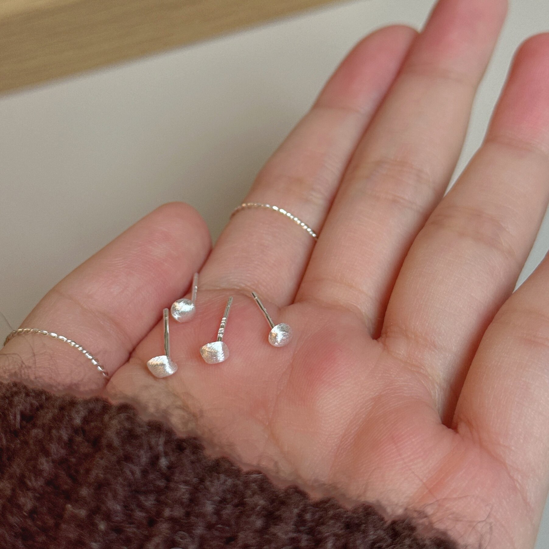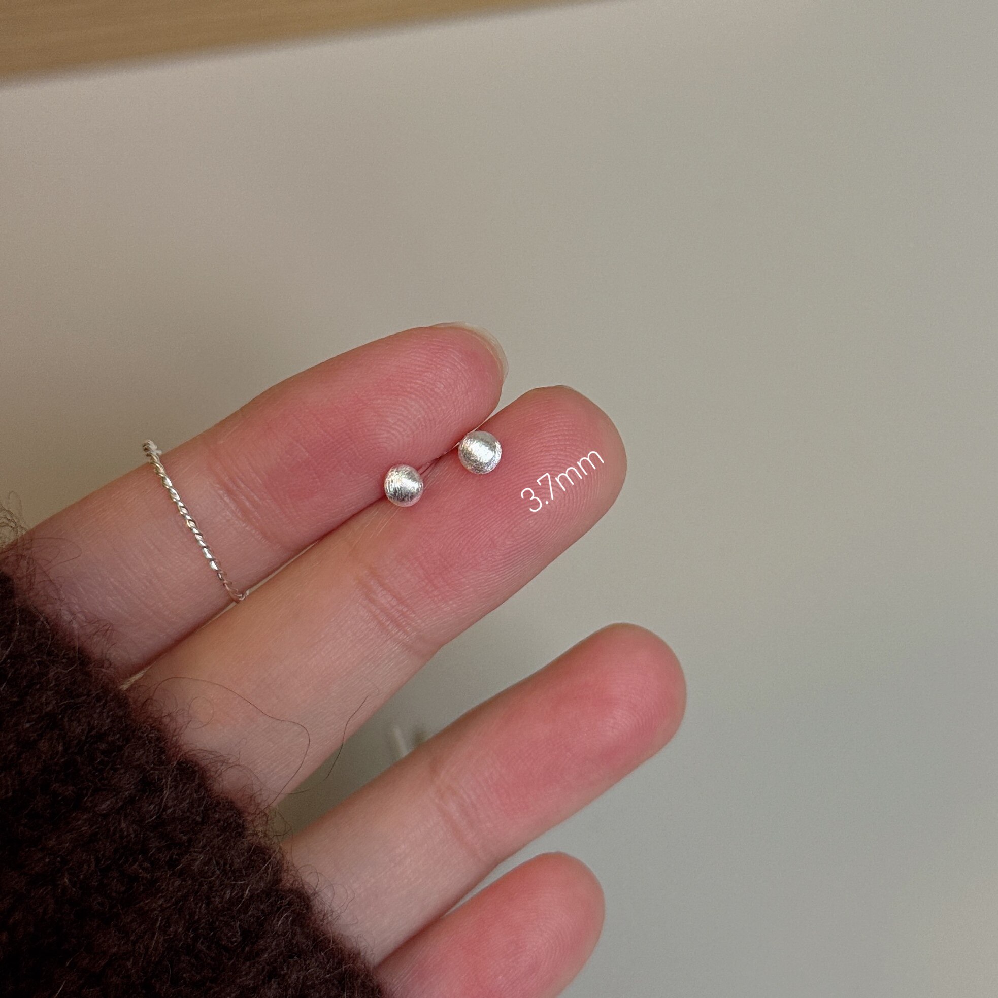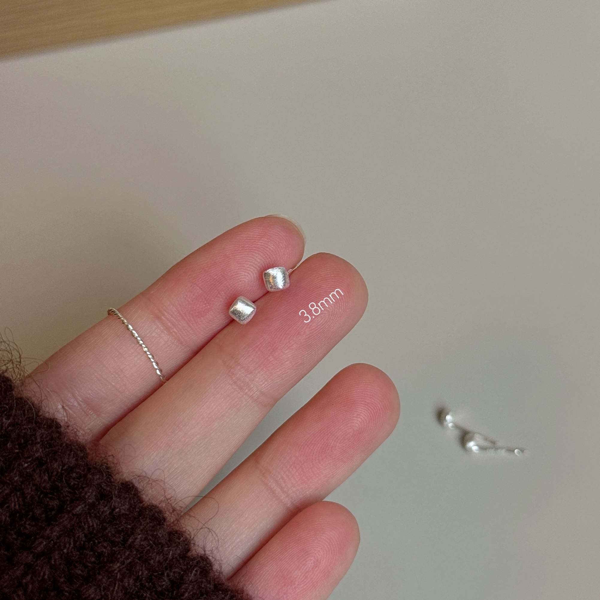 999足银几何小鼻嘎耳钉 迷你拉丝白银耳骨钉养耳适合新耳洞