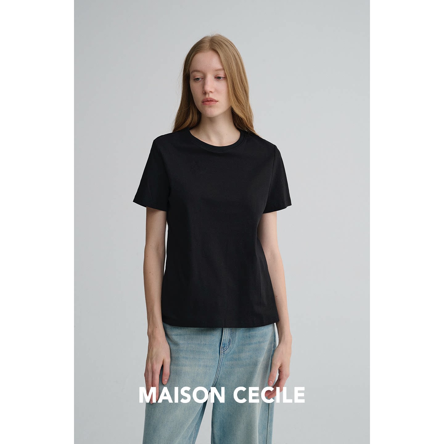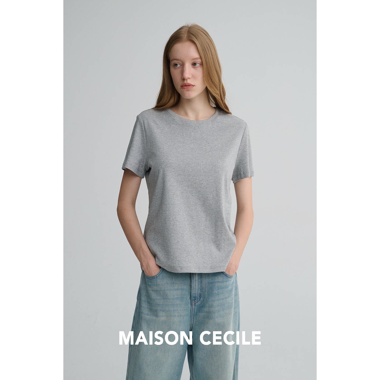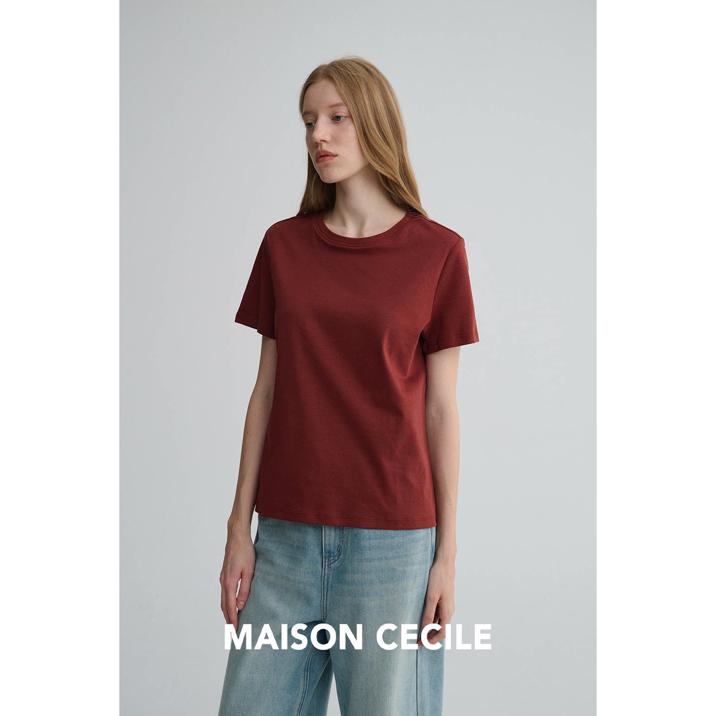 MAISON CECILE 四色|基础好穿显比例纯色百搭圆领正肩T恤
