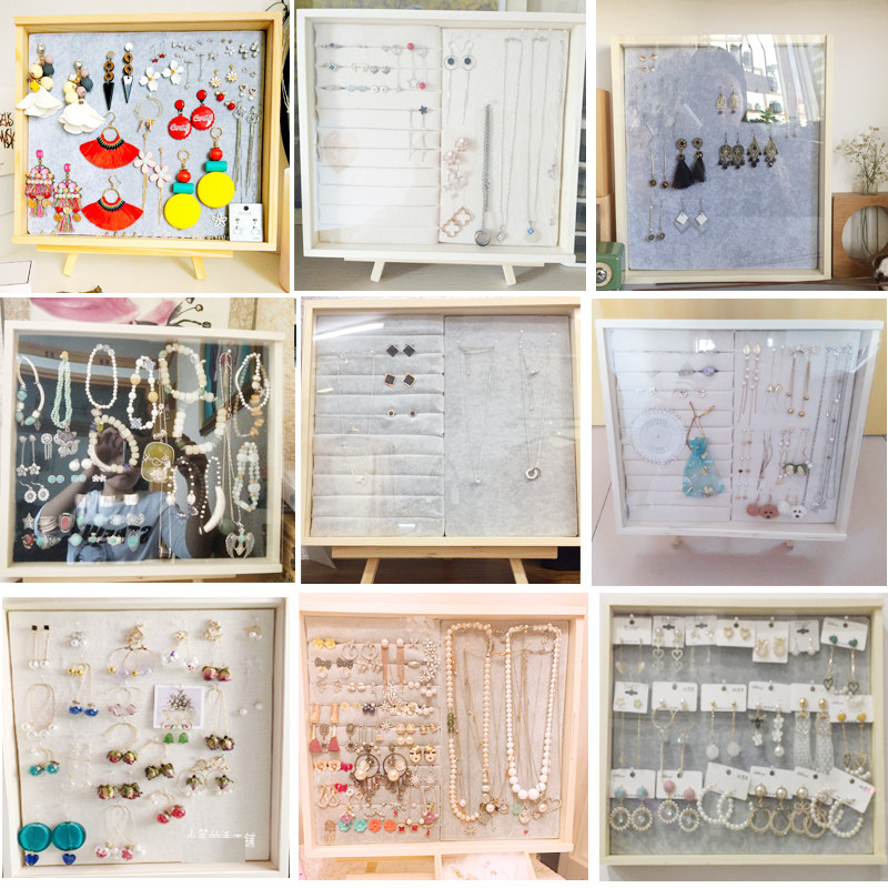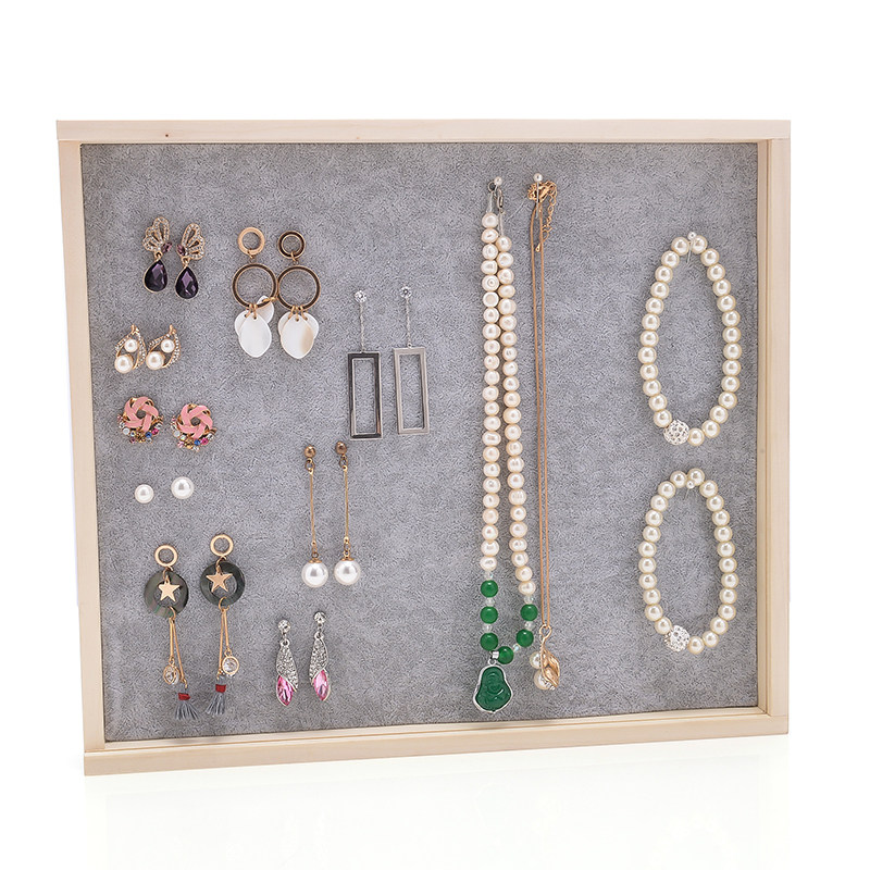 实木防尘首饰盒家用耳环架子耳钉托盘项链手链耳饰项链摆摊展示架