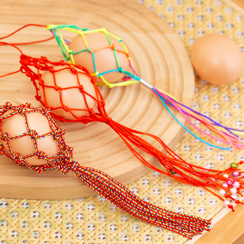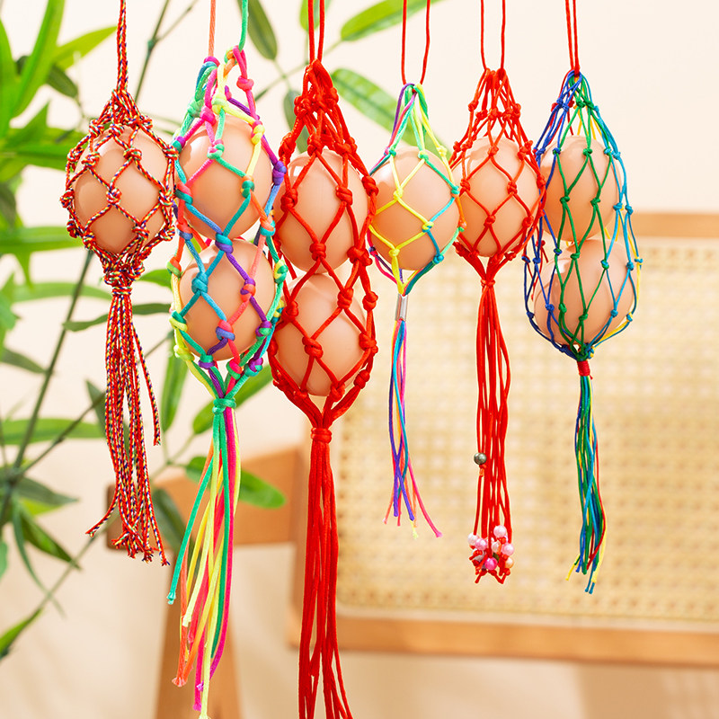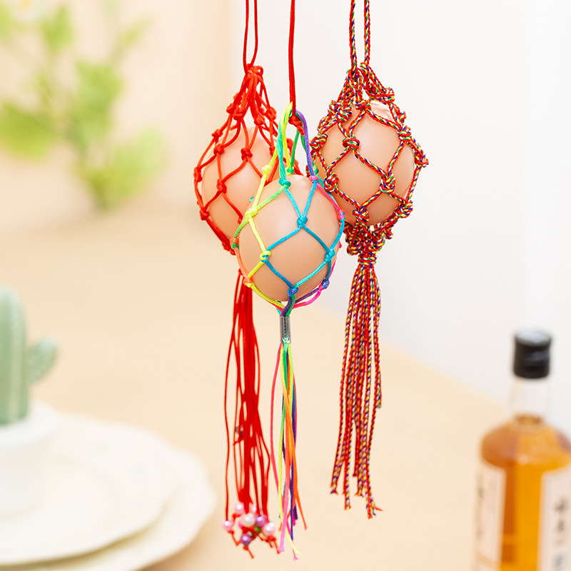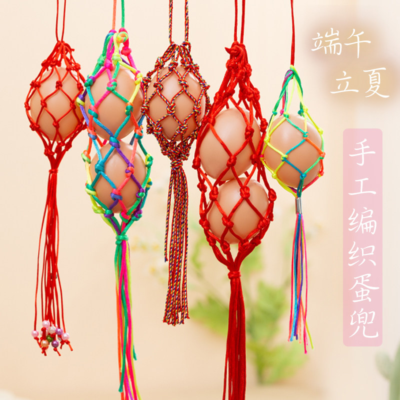 端午节五彩鸡蛋鸭蛋挂脖蛋网立夏网袋手工diy编织成品蛋兜蛋袋