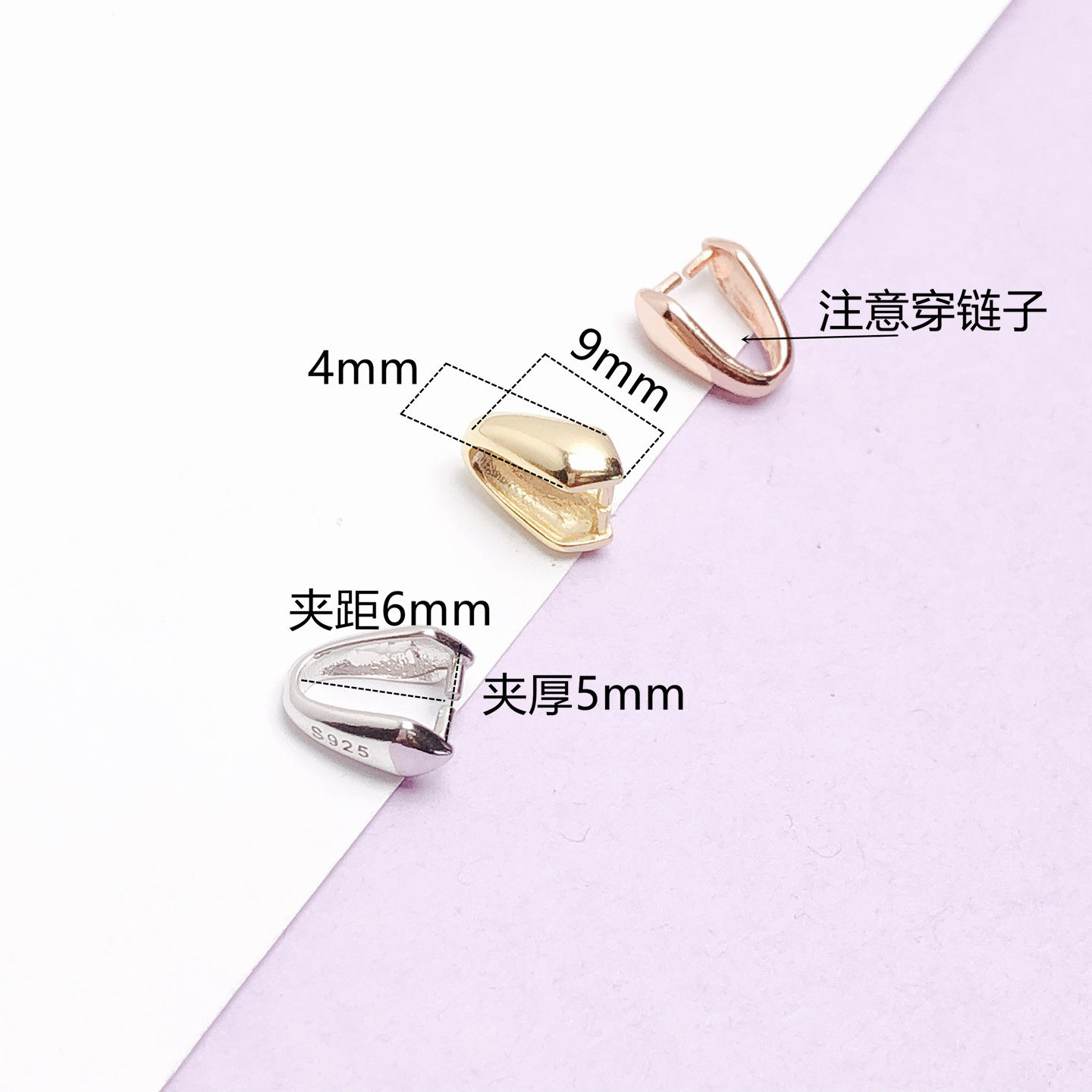 S925纯银镀18k金瓜子扣吊坠玉叶如意扣夹扣银夹扣玉石翡翠蜜蜡扣