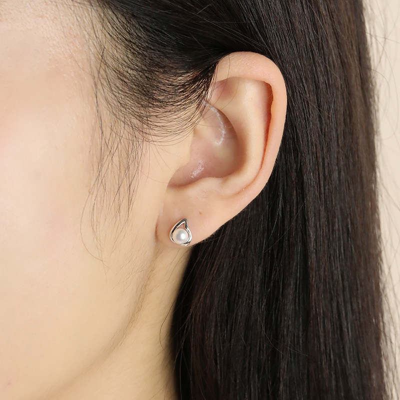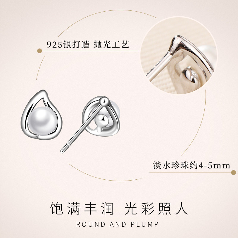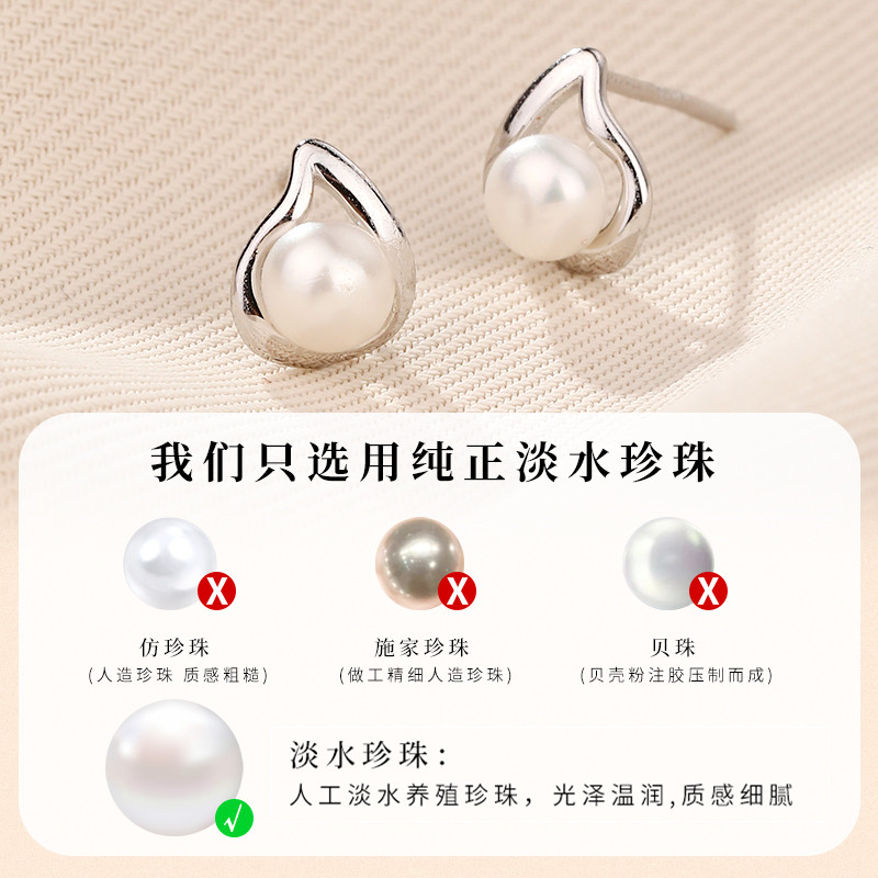 老银匠s925银耳钉淡水珍珠送女友简约时尚情人节礼物纯银耳饰养耳