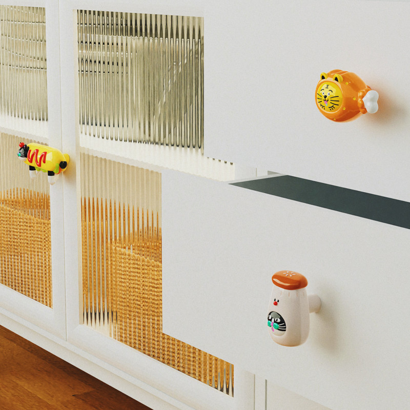 uodycoco原创衣柜拉手儿童柜门可爱卡通猫咪动物抽屉把手创意礼物