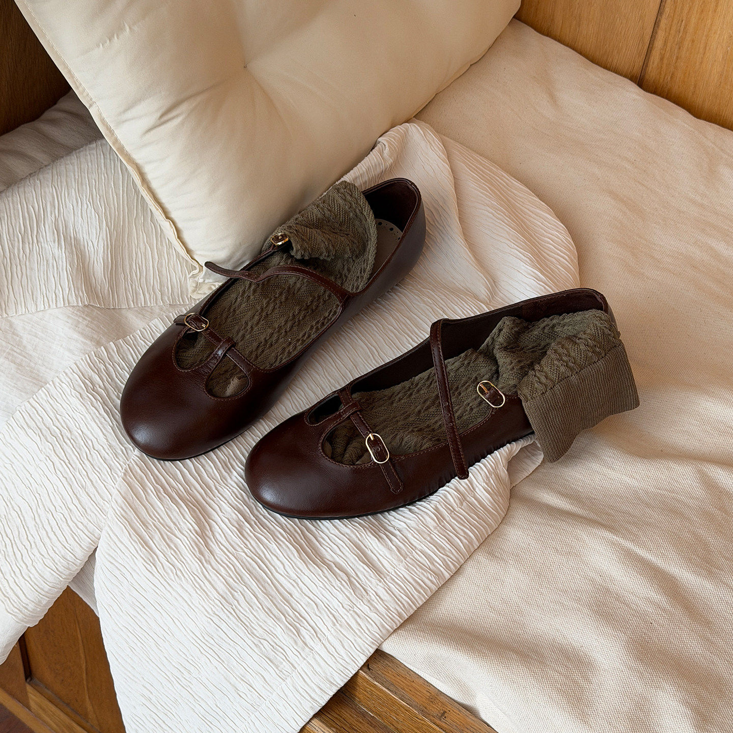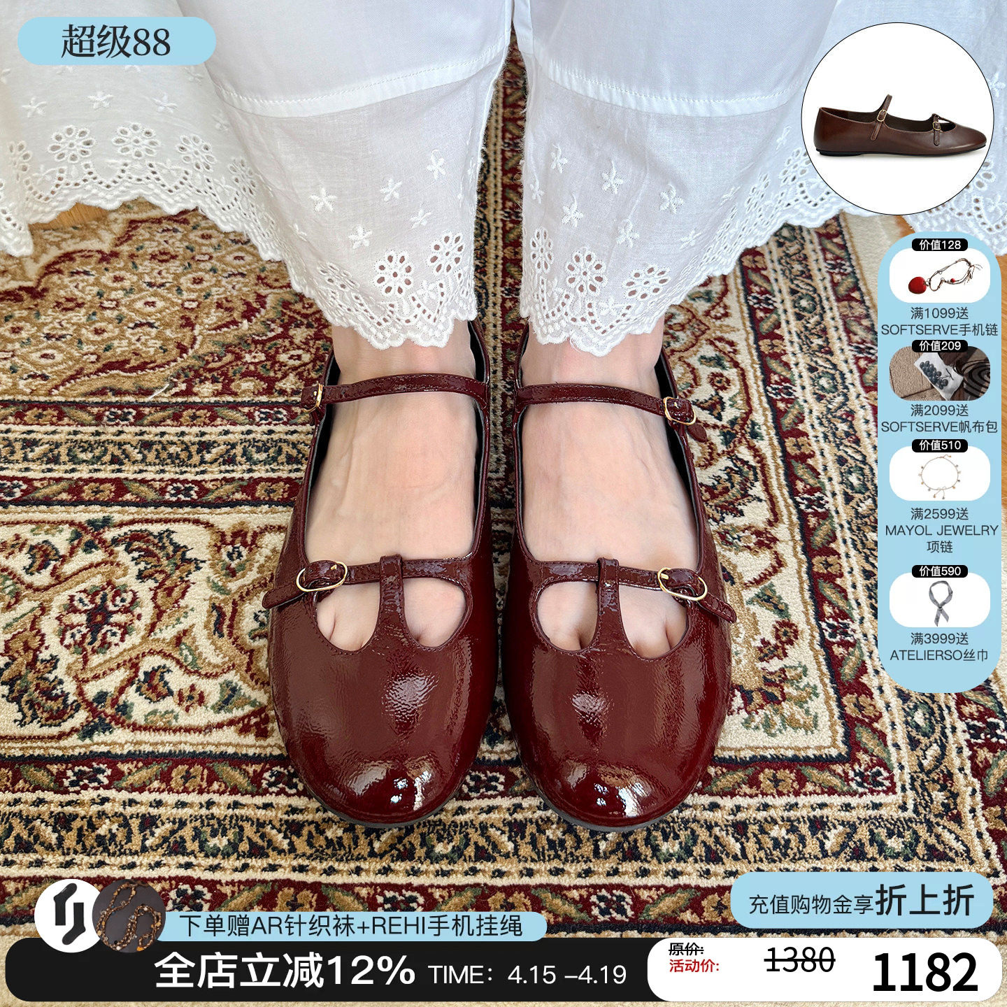unfolio 26夏季新款镂空玛丽珍鞋平底乐福鞋一字带芭蕾舞鞋单鞋女