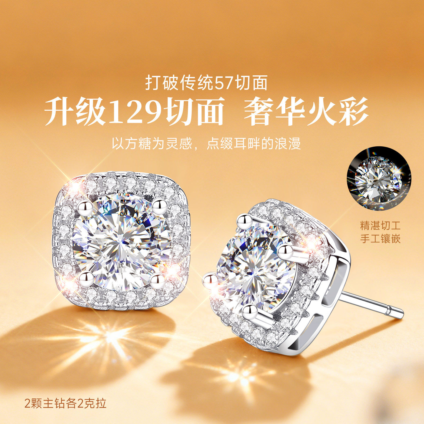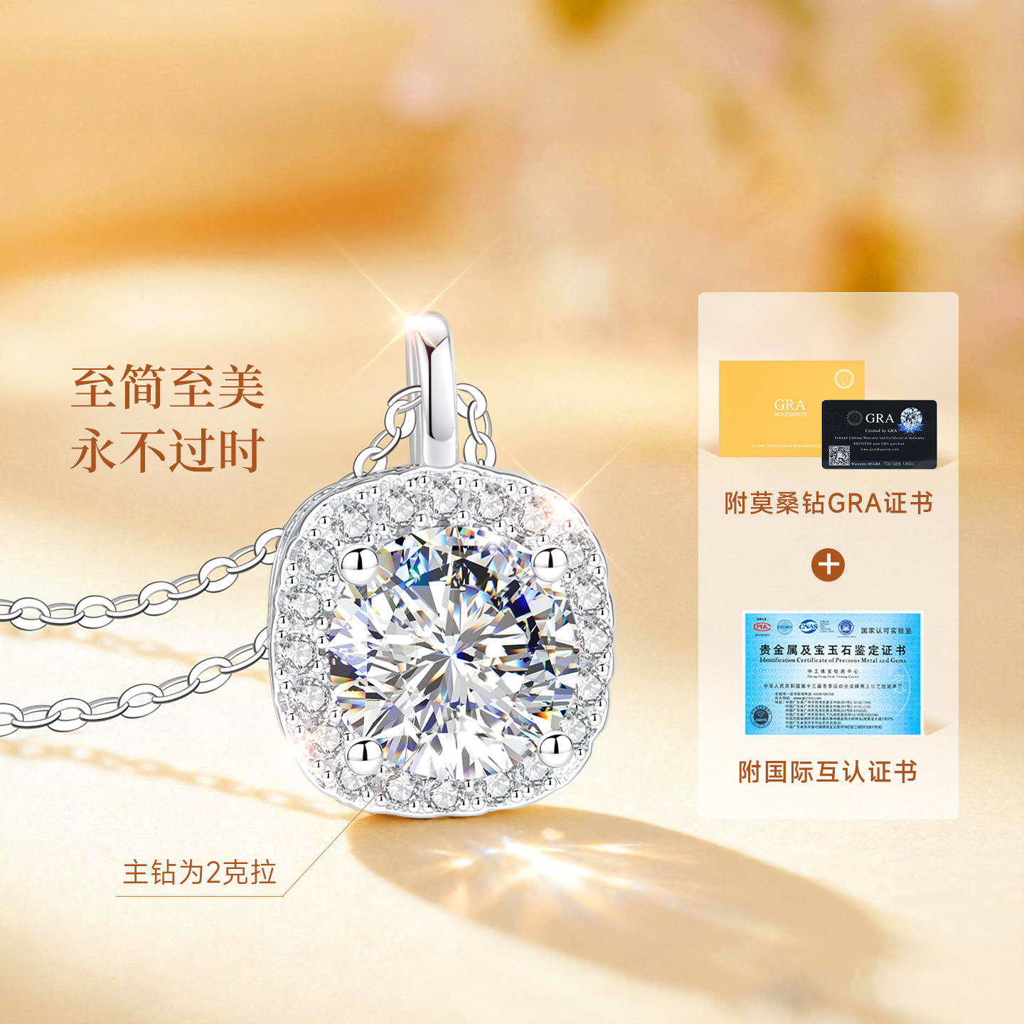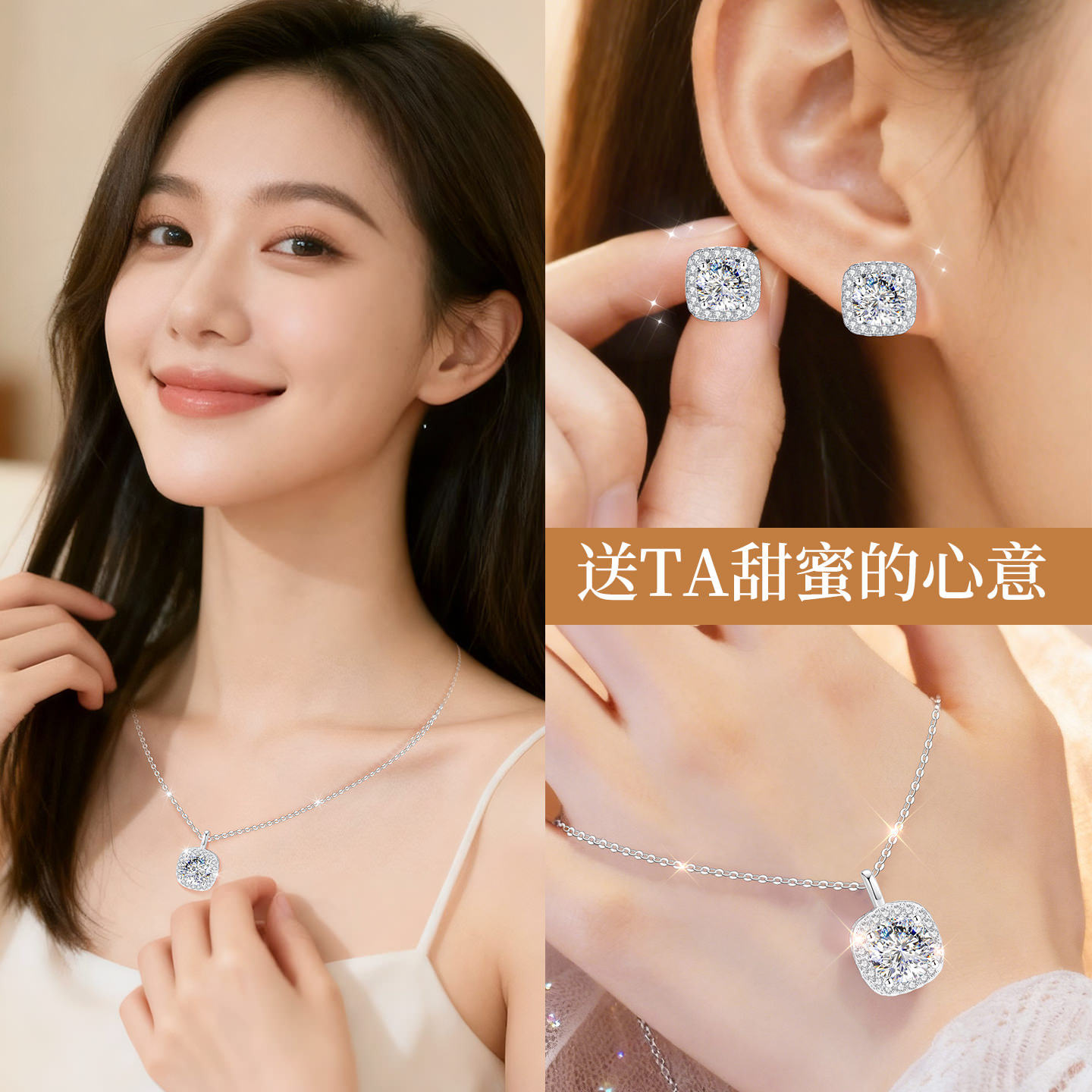 999纯银方糖小银项链耳钉首饰套装女款女莫桑石莫桑钻钻吊坠女士