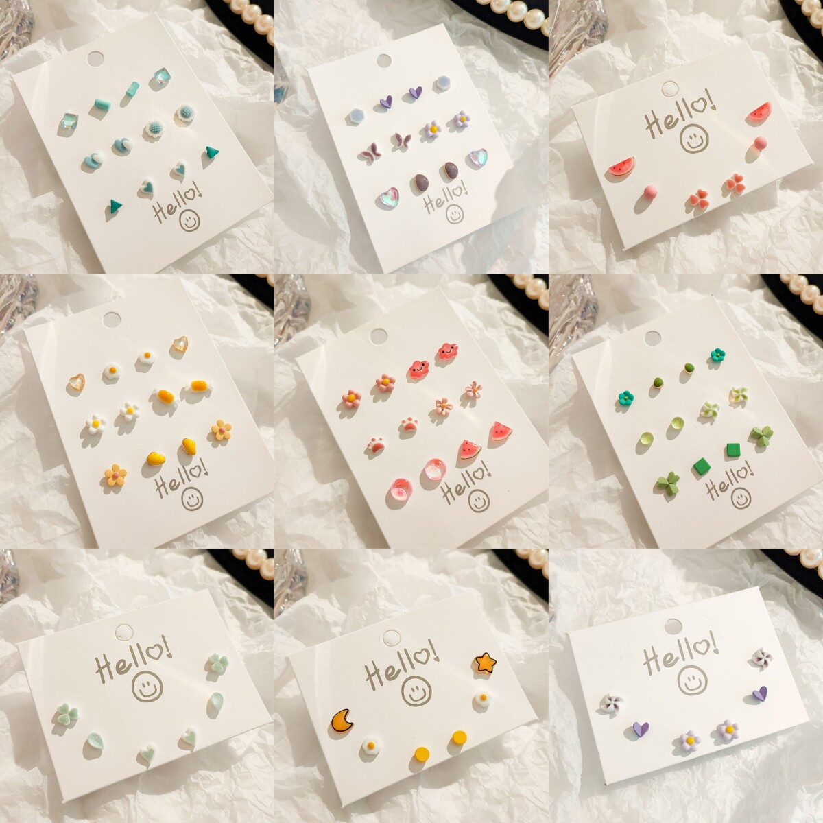爆款S925纯银针一周耳钉组合套装爱心精致小巧防过敏小耳骨钉耳饰