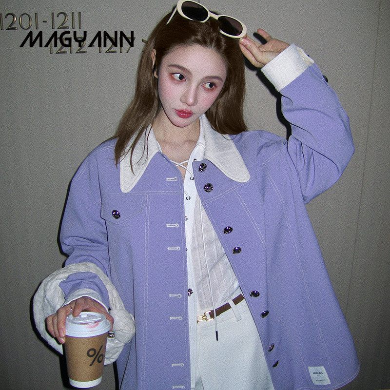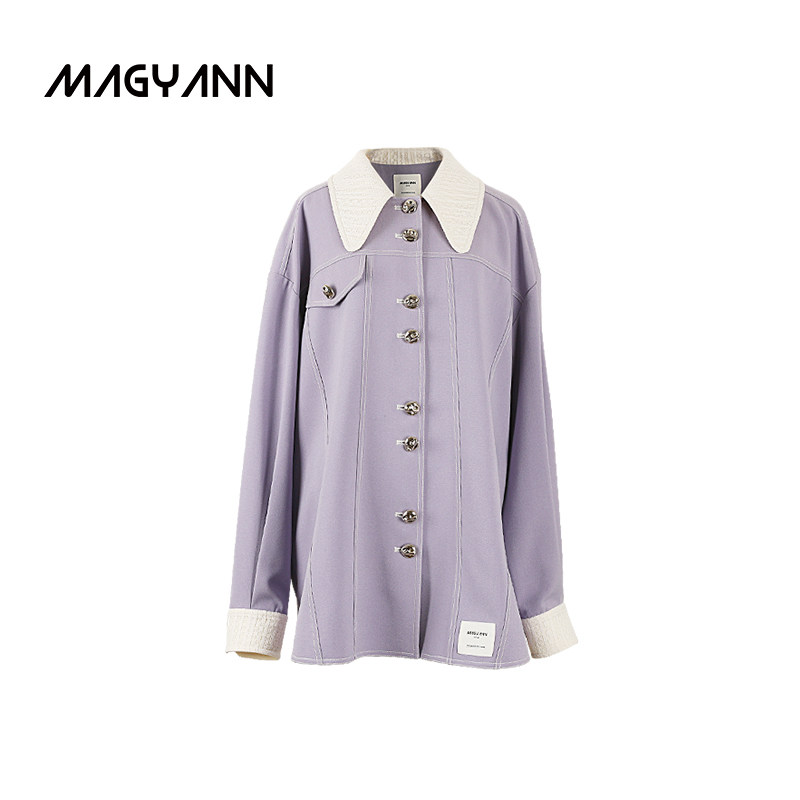 Magyann设计师原创2026春休闲简约宽松中长款分割撞色压线外套女