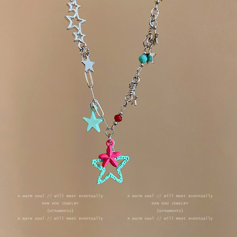 多巴胺粉绿五角星项链女小众Y2K甜酷风彩色锁骨链韩版爆款配饰