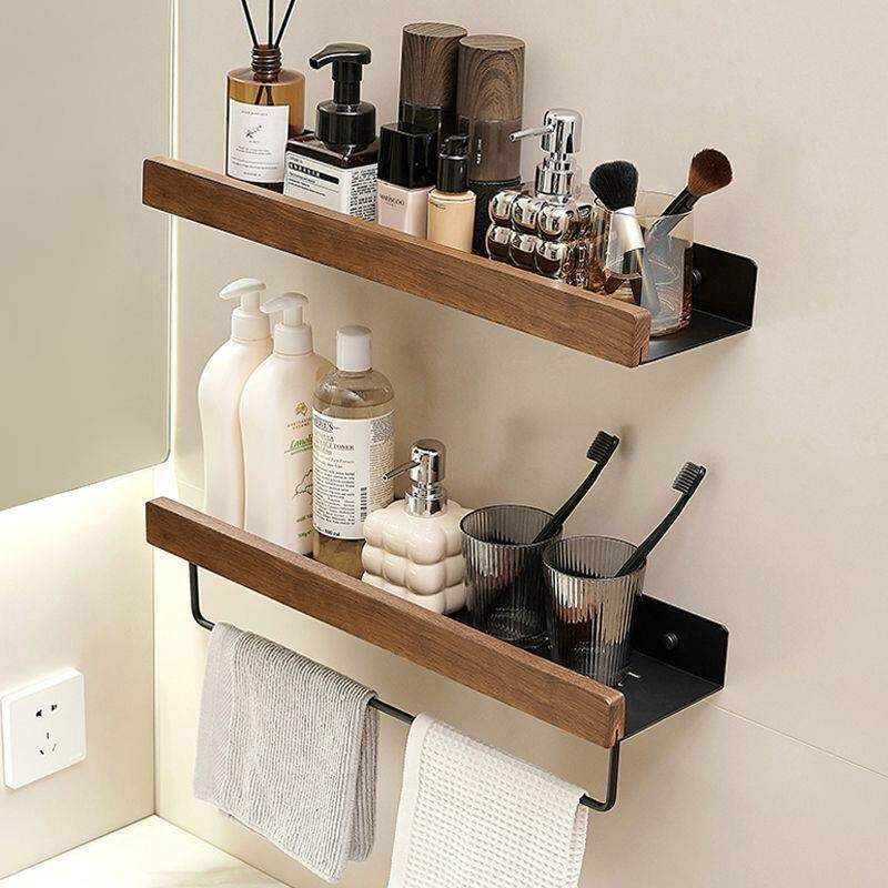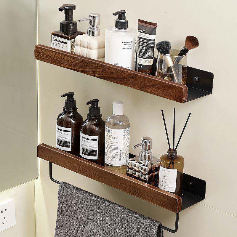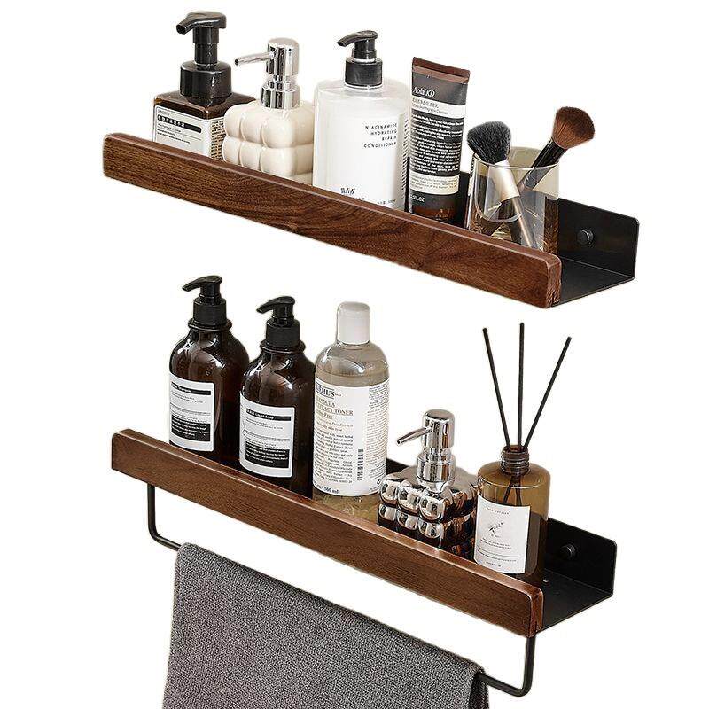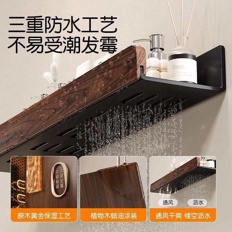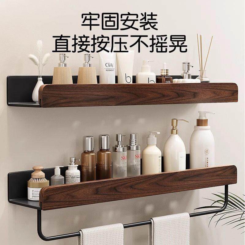 轻奢免打孔胡桃木卫生间置物架收纳架浴室厕所洗手台壁挂墙上挂架