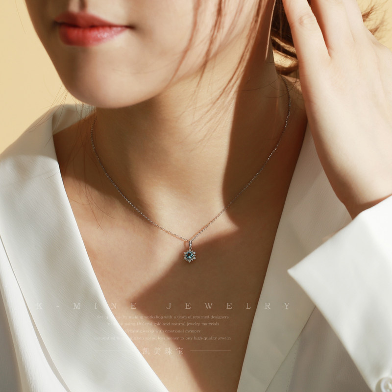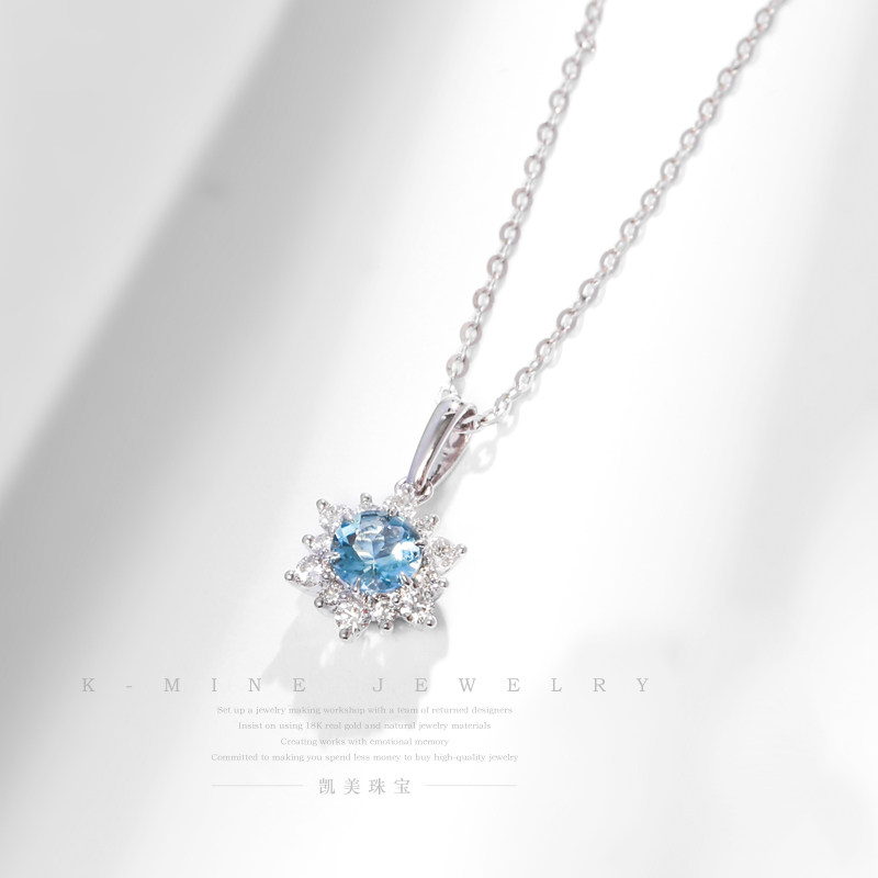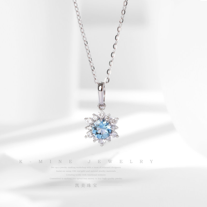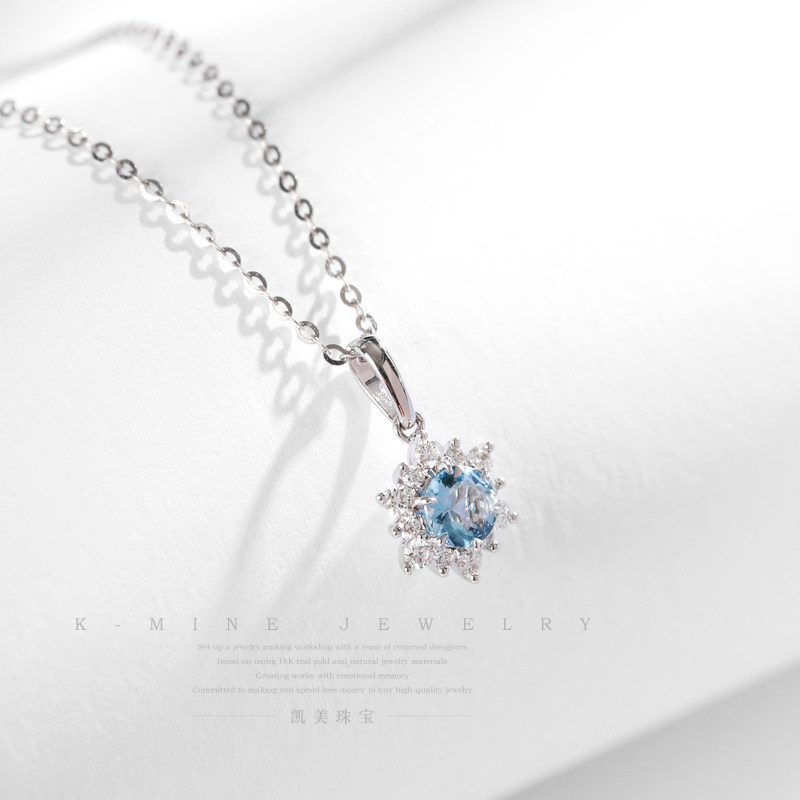 正品天然海蓝宝钻石雪花单独吊坠女18K白金项链带证书支持定制