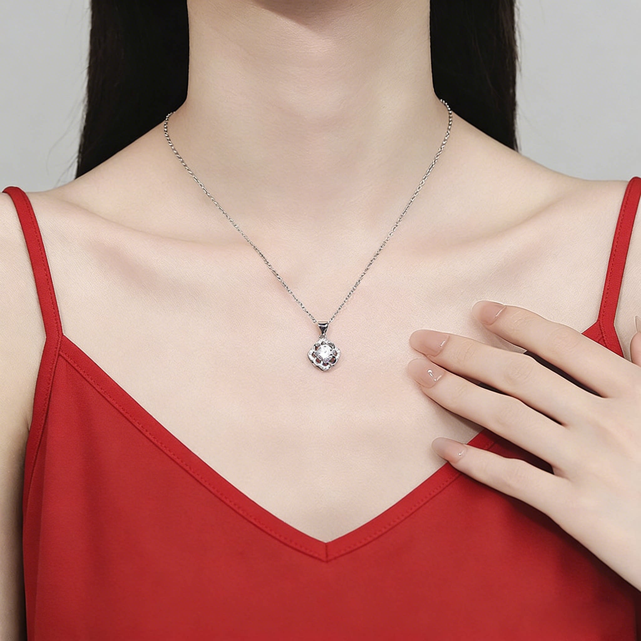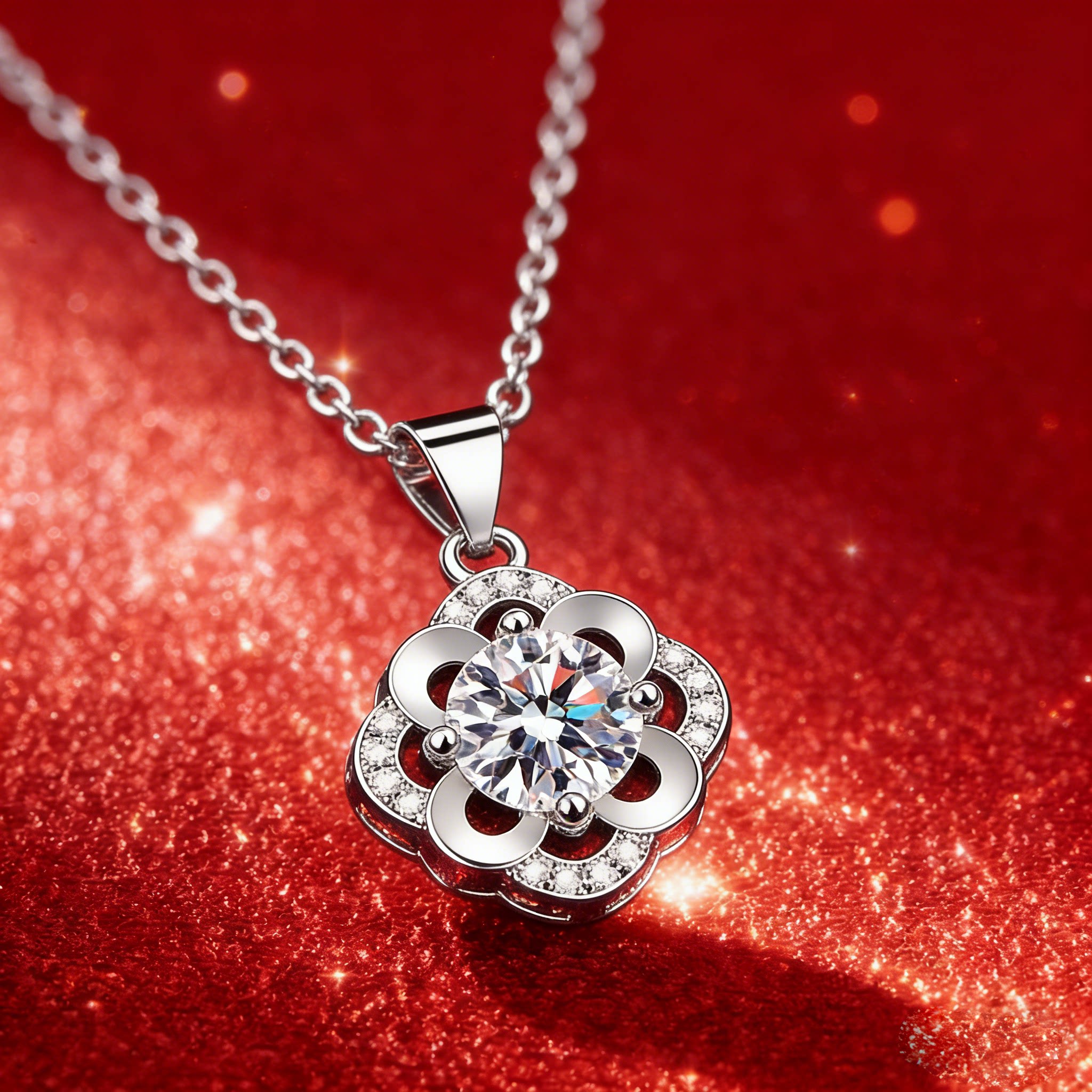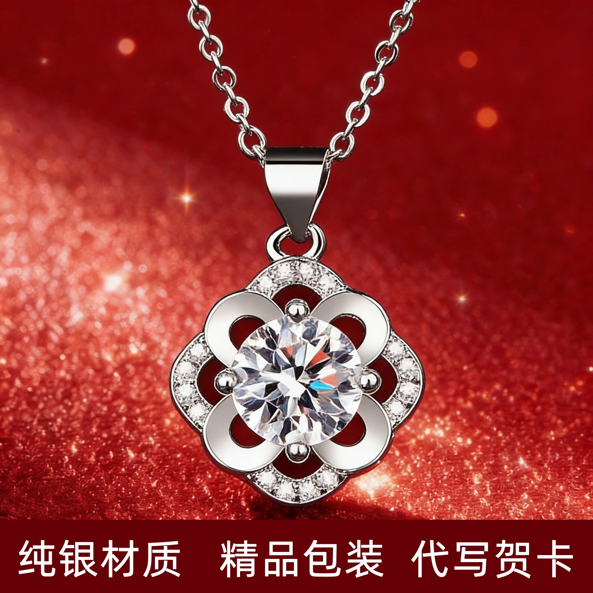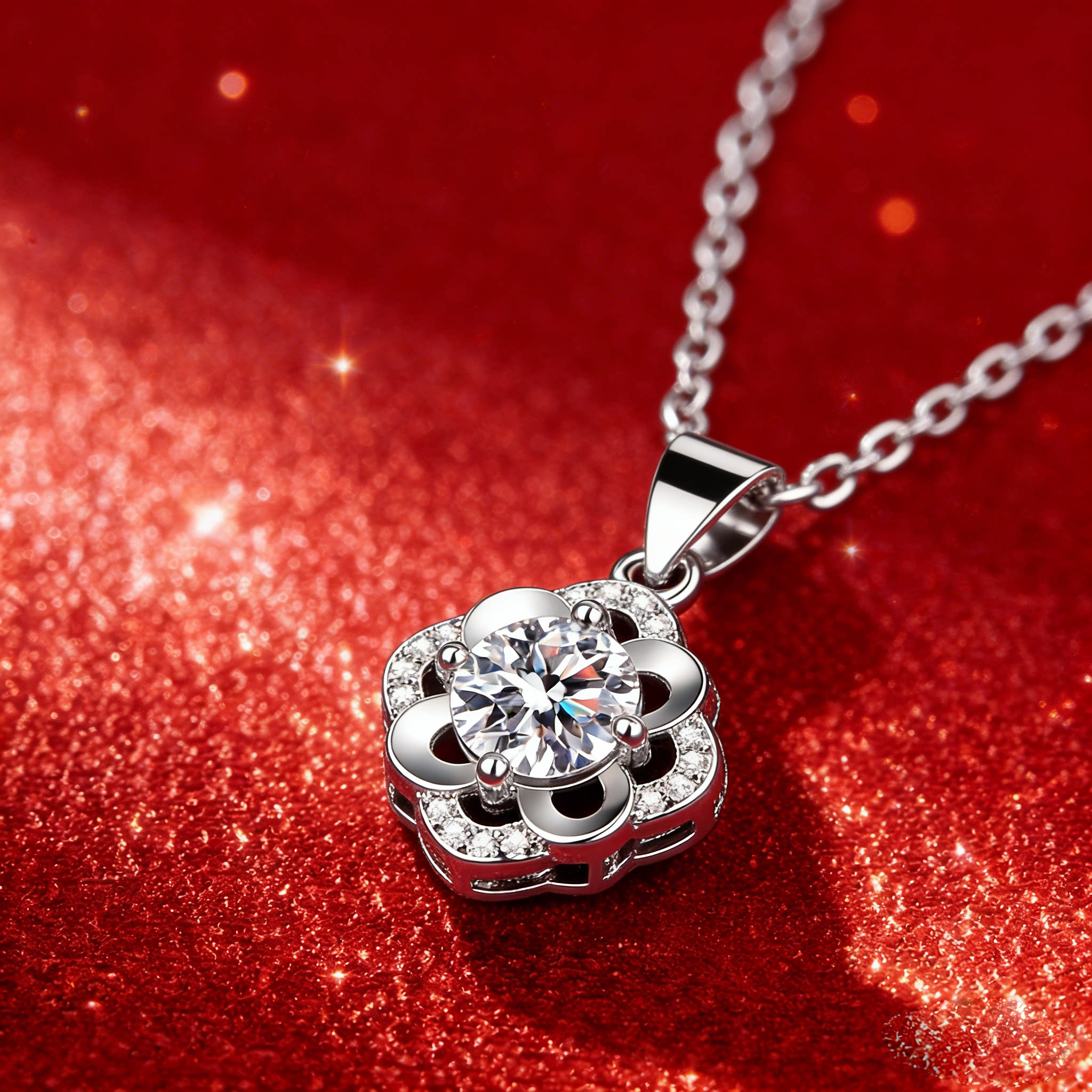 爆款S925纯银镶1克拉莫桑钻花朵四叶草造型锁骨链项链轻奢气质女