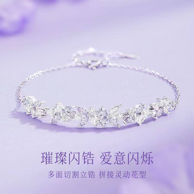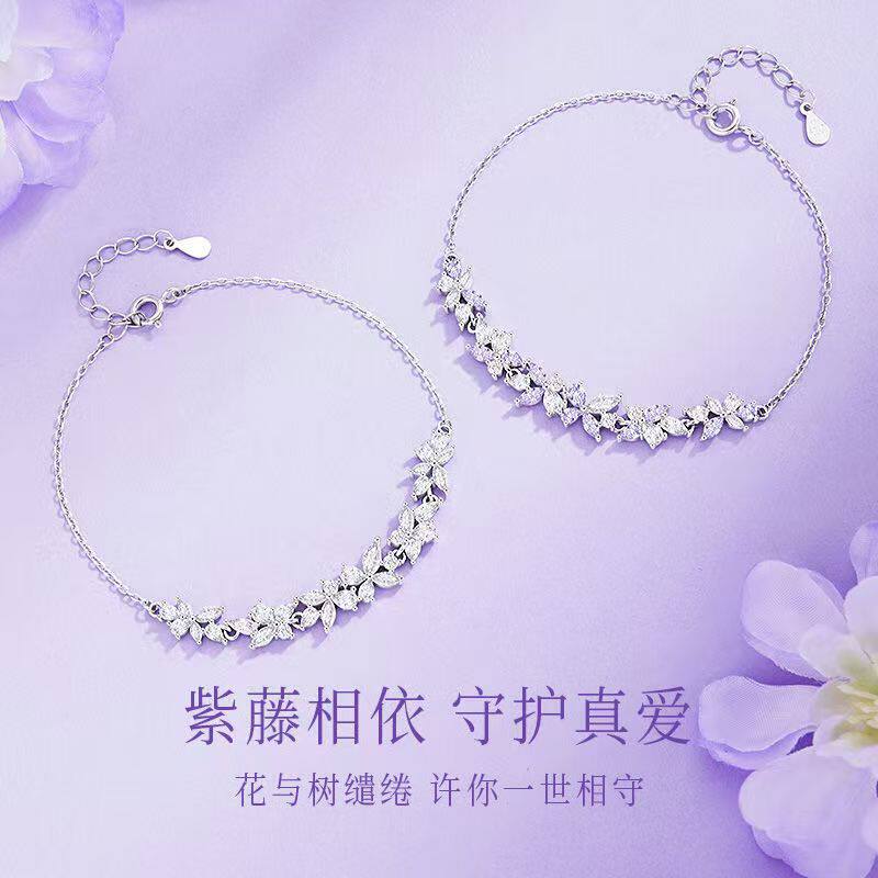925纯银紫藤花微笑手链女时尚轻奢风手环网红简约气质手饰品镶钻