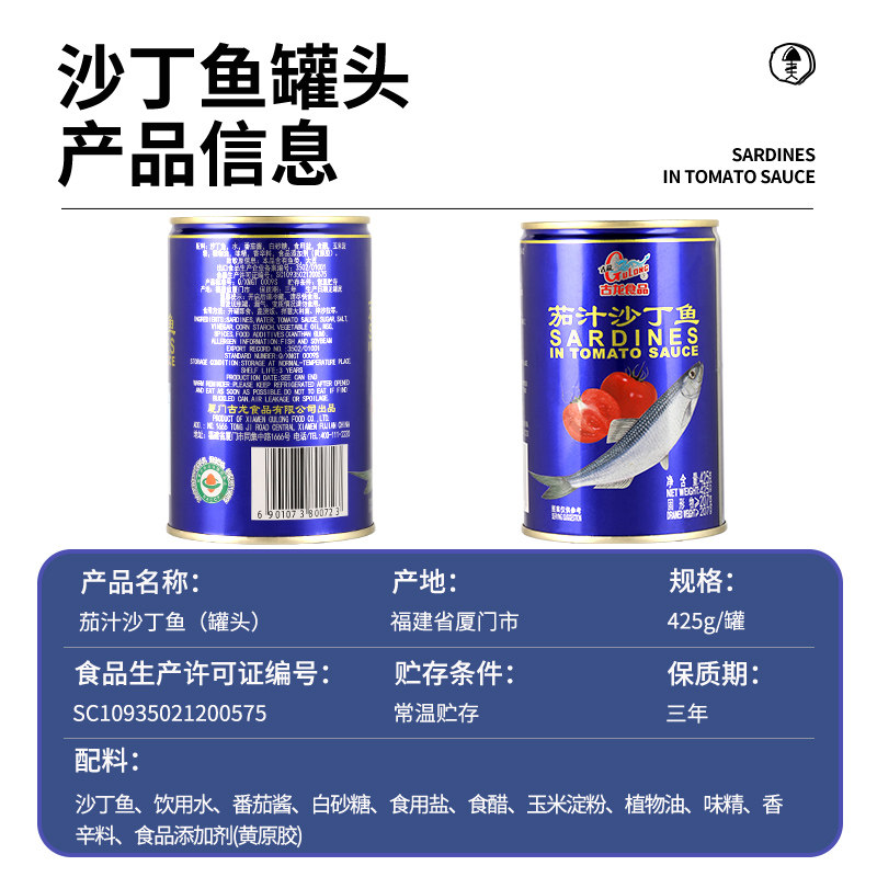 古龙食品茄汁沙丁鱼425g*5罐深海鱼即食下饭番茄鱼海鲜鱼肉速食品