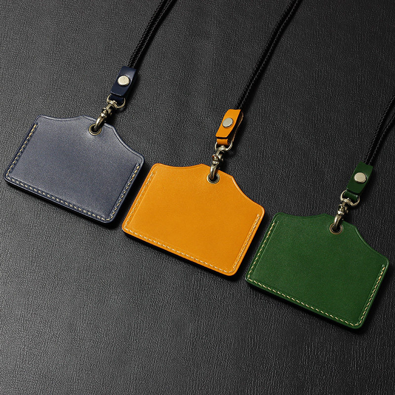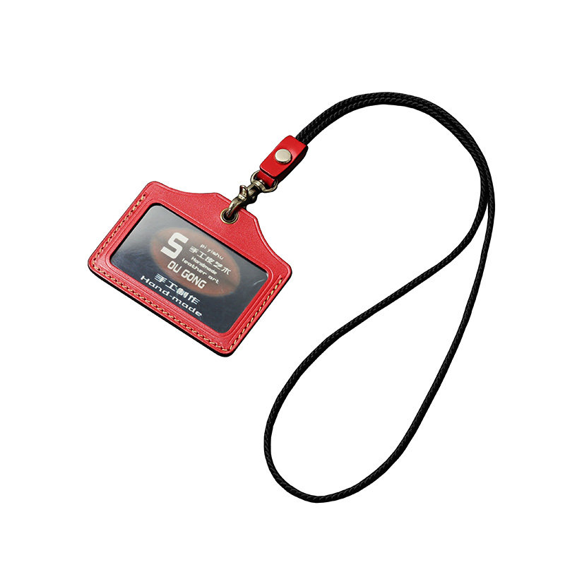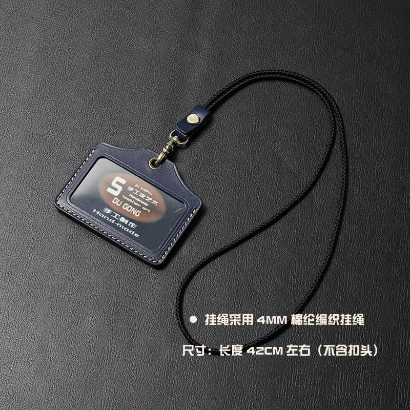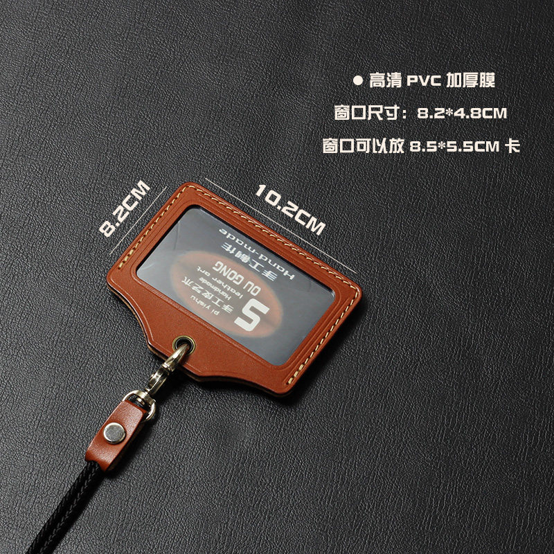 胸牌真皮工作证卡套带绳八达通横版导游证手工牛皮公交饭身证工卡