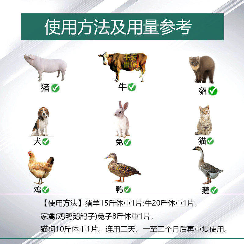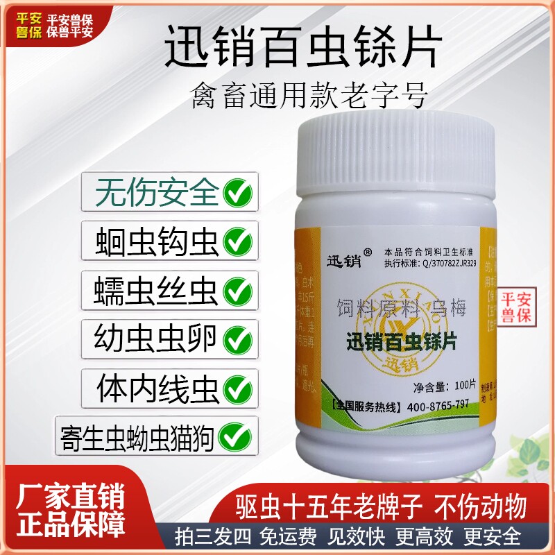 迅销百虫铩片内驱猪羊牛狗猫猪鸡鸭蛔虫钩虫丝虫蠕虫寄生虫卵外驱
