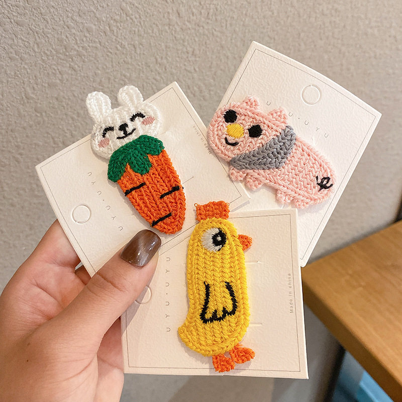 小兔发夹毛线针织动物发卡儿童发饰少女心BB夹子头饰编织刘海发夹