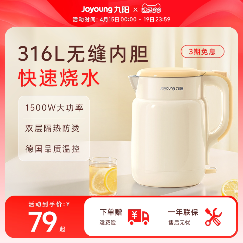 九阳烧水壶电热水壶家用316L不锈钢烧开水壶煮水壶正品官方旗舰店