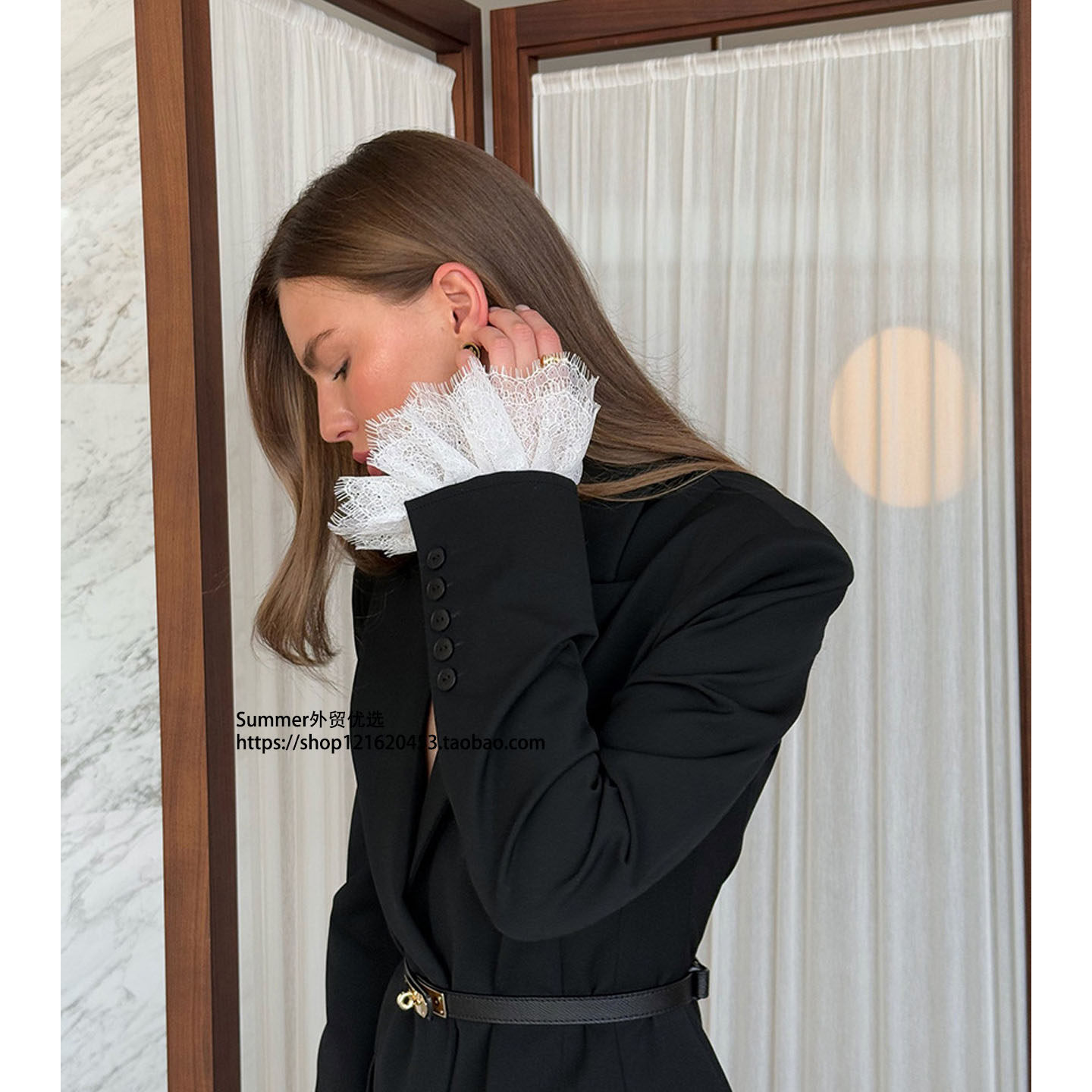 欧美v领蕾丝花边御姐风小西装外套女黑色气质上衣 Lace lace suit