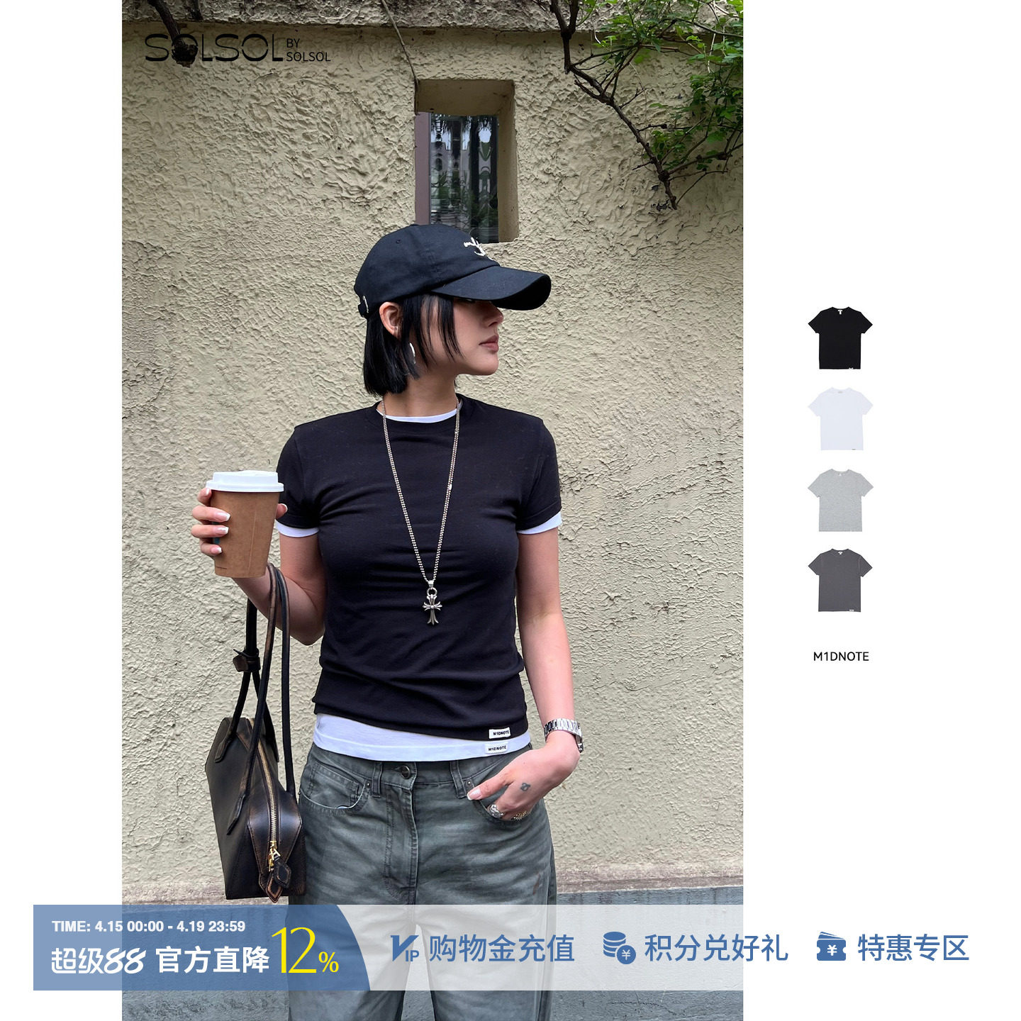 M1DNOTE 设计师品牌26春夏新款休闲纯色圆领针织T SOLSOL买手店