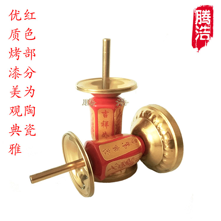 新款合金陶瓷蜡烛插台喜庆插竹签蜡烛台 拜神供奉家居礼佛用烛座