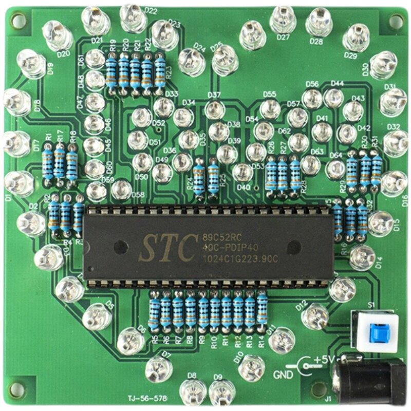 七彩炫光流水心形灯套件51单片机趣味DIY电子制作焊接练习电路板
