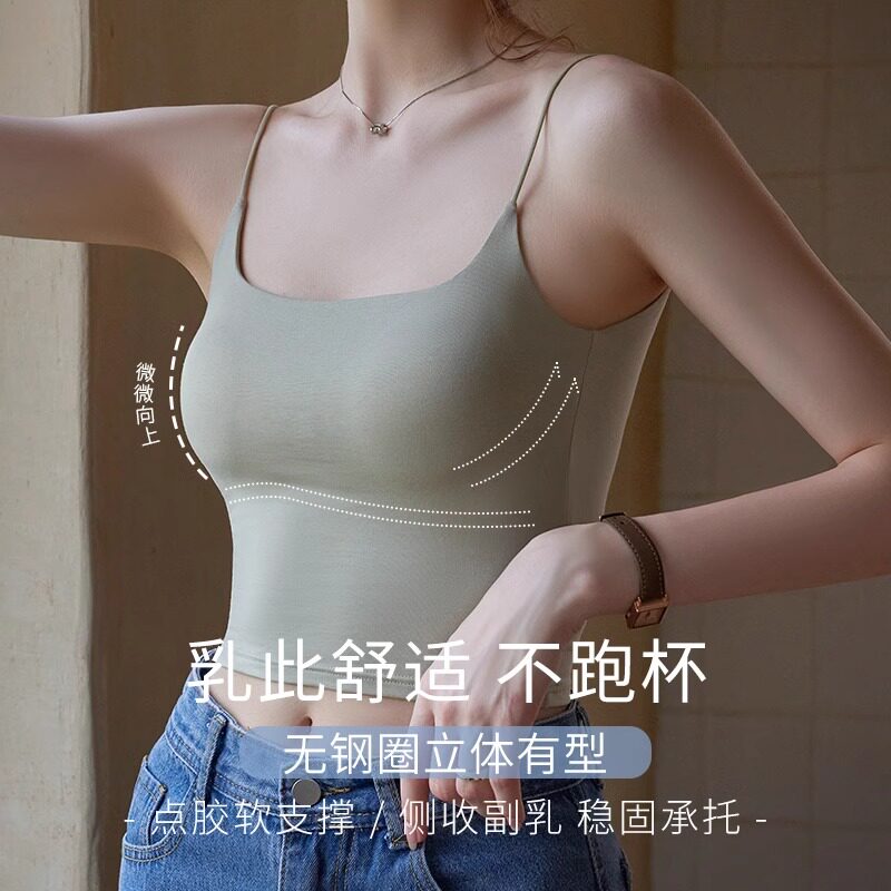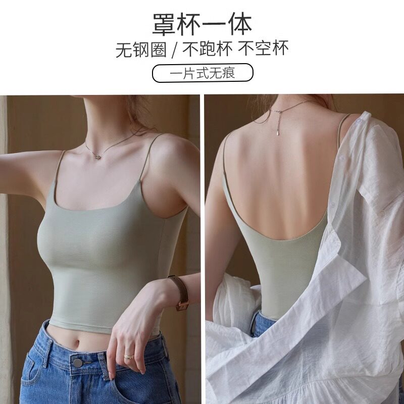 拉夏贝尔白色小吊带背心女内搭文胸一体带胸垫抹胸上衣美背打底衫