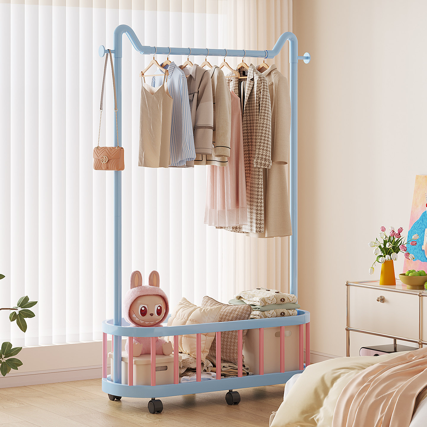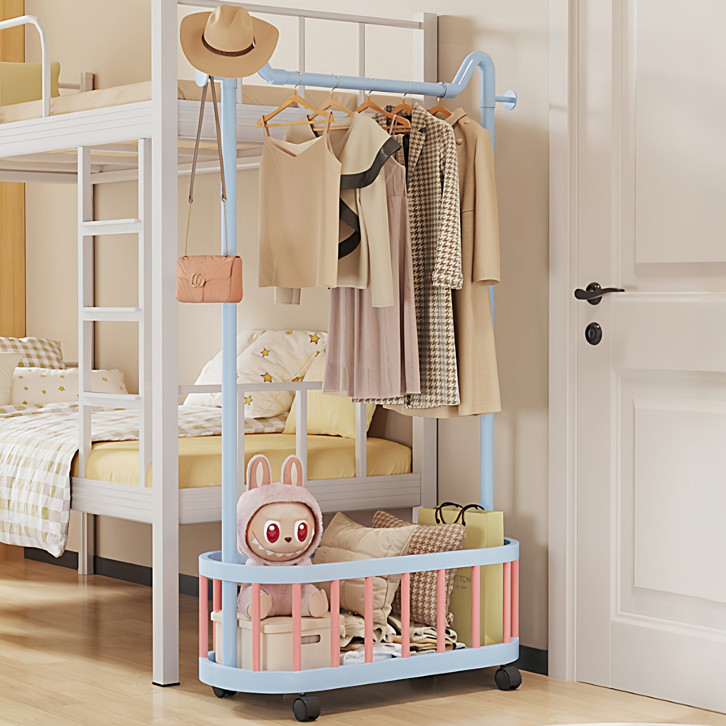 ins风挂衣架落地卧室衣帽架宿舍小型床边家用衣服收纳晾衣架移动