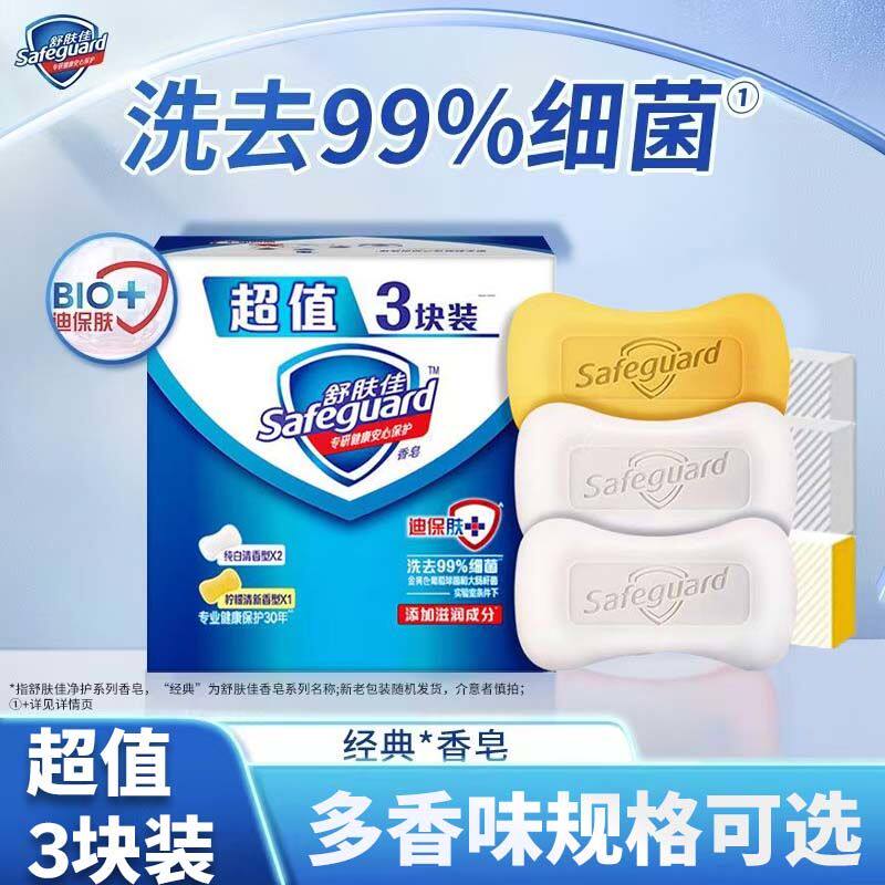 舒肤佳香皂洗澡沐浴洗手家庭特惠装肥皂100g*3块纯白柠檬芦荟
