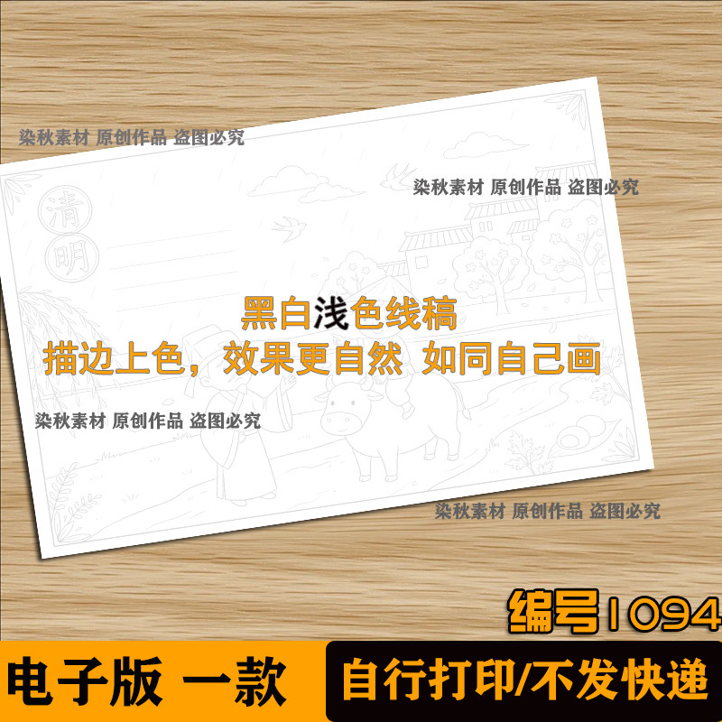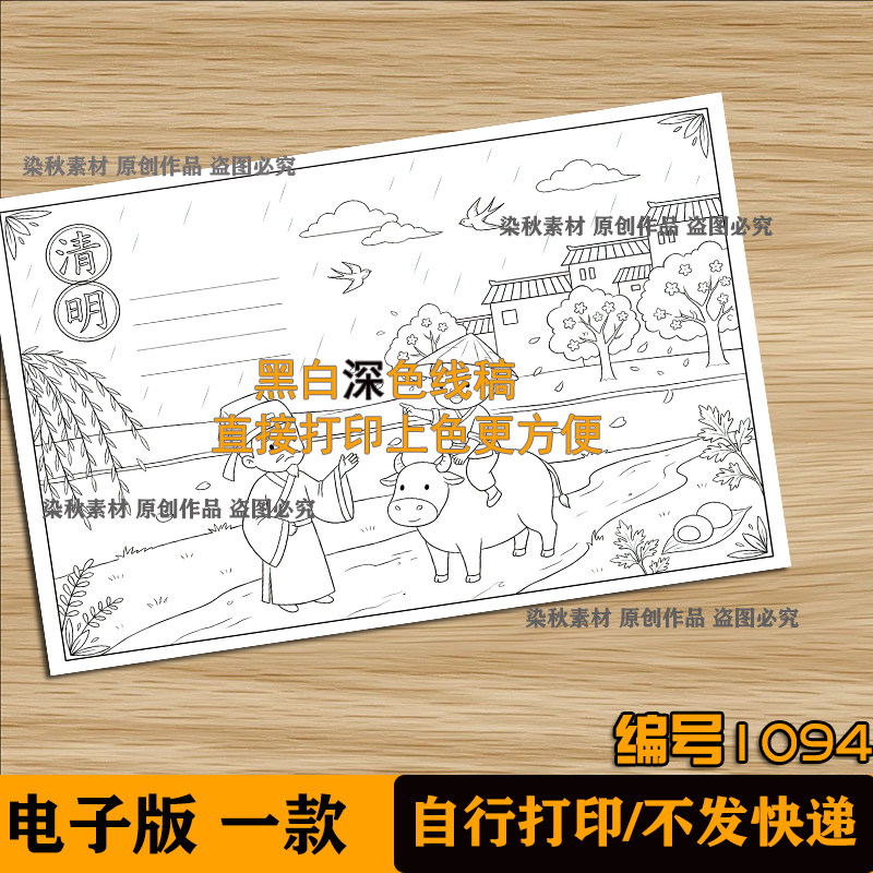 清明古诗配画手抄报二十四节气传统节日小学生电子版线稿可涂色