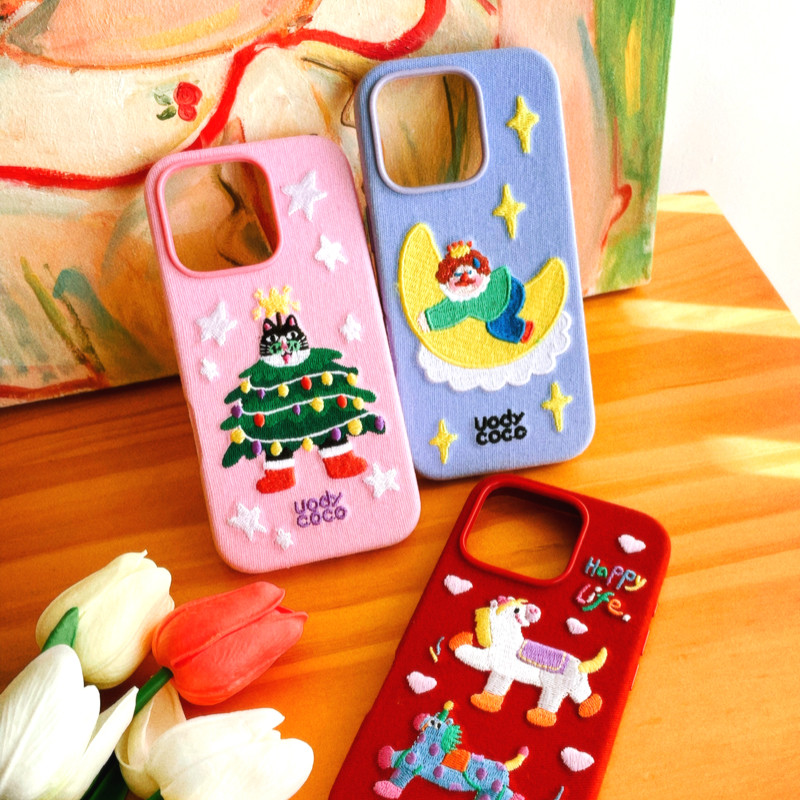 uodycoco原创刺绣手机壳小众设计个性防撞防摔苹果17pro手机保护壳适用iphone15pro/15promax/16pro/16promax