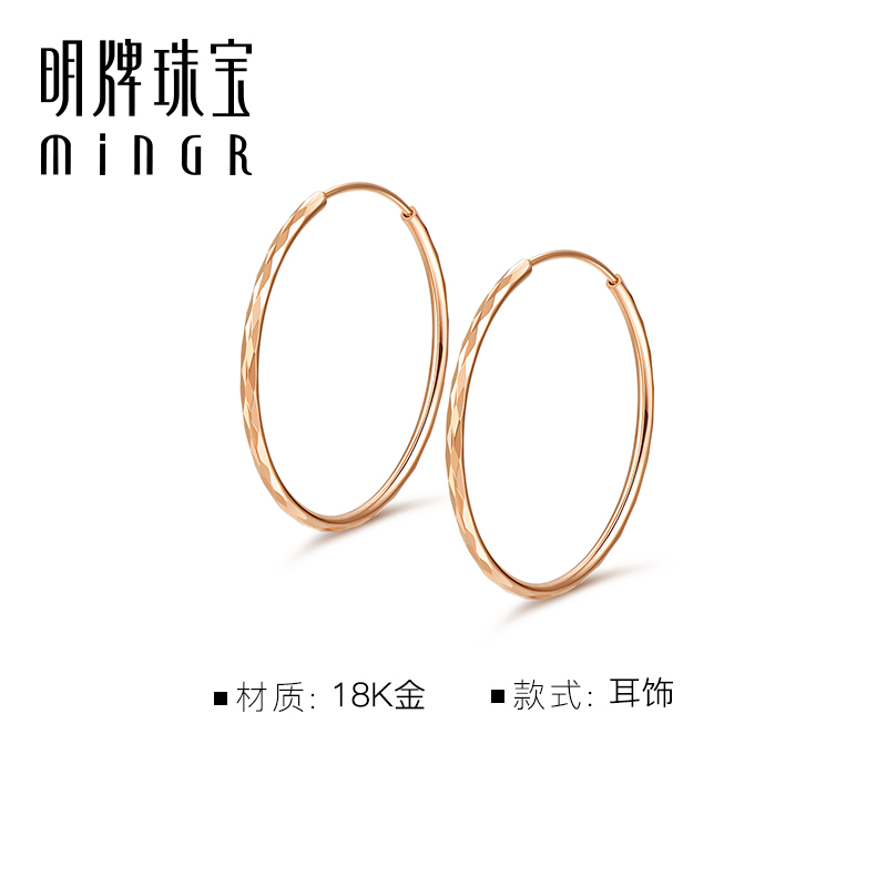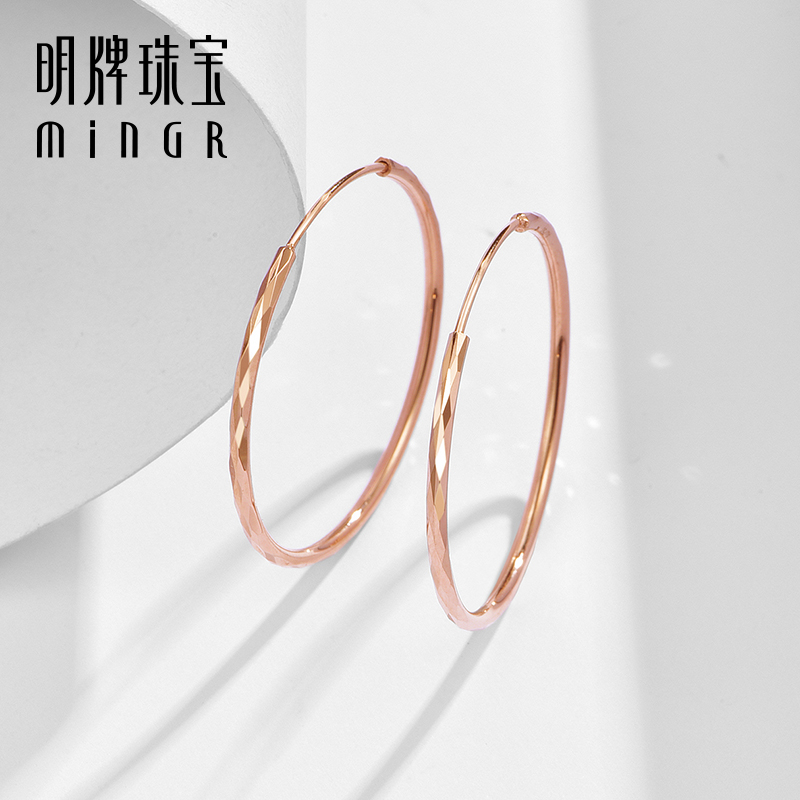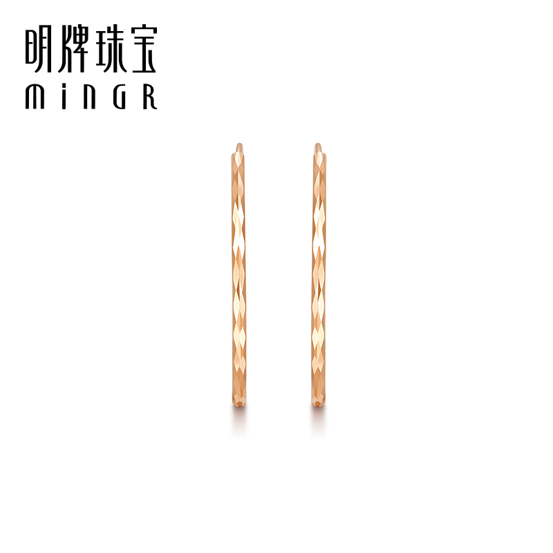明牌珠宝18K金耳饰 玫瑰金彩金菱纹耳圈大气圆弧时尚耳环CSH0309