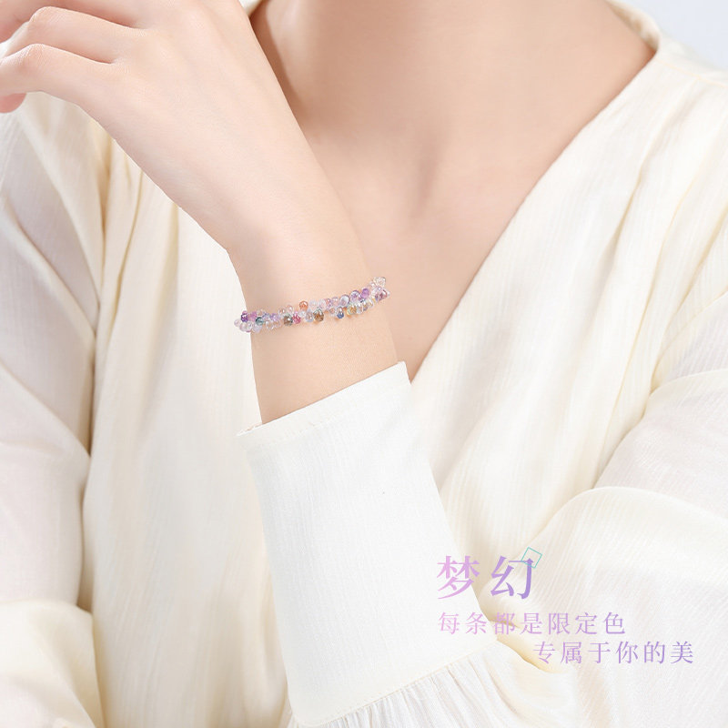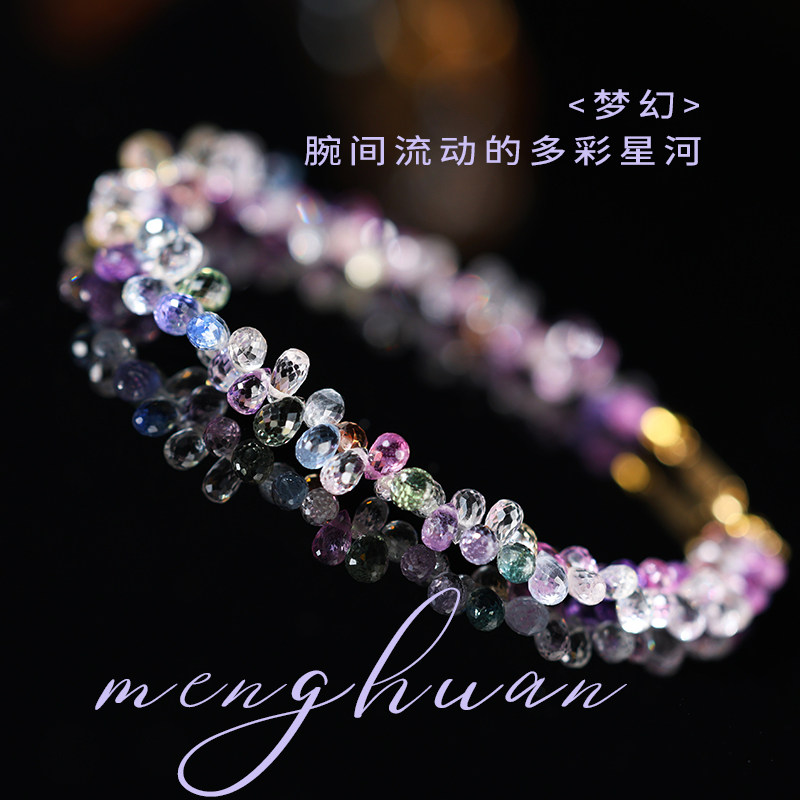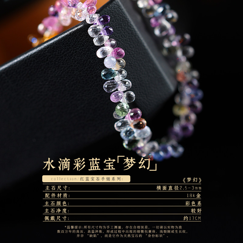 可卿珠宝 梦幻 彩色蓝宝石手链18k金手饰宝石手饰正品女天然