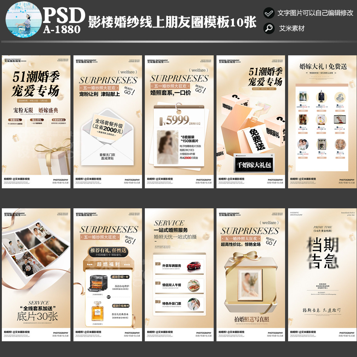 A1880影楼婚纱摄影朋友圈线上51活动方案PSD宣传海报五一模板素材