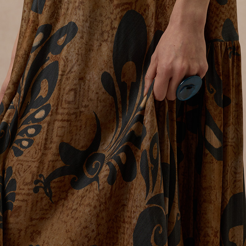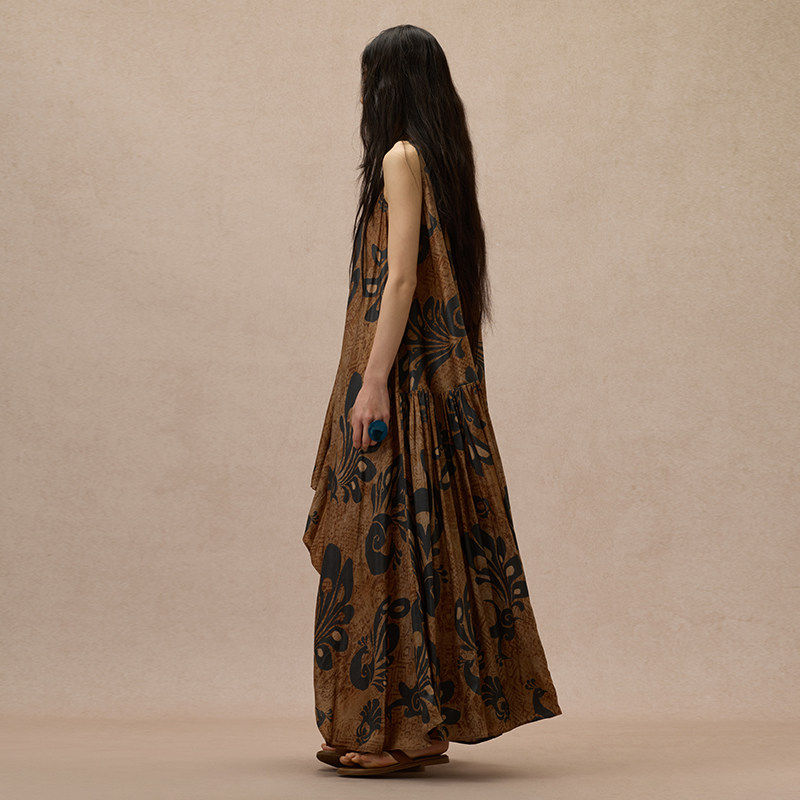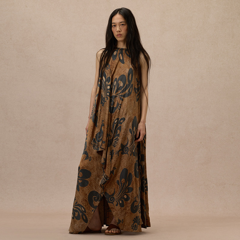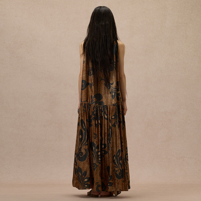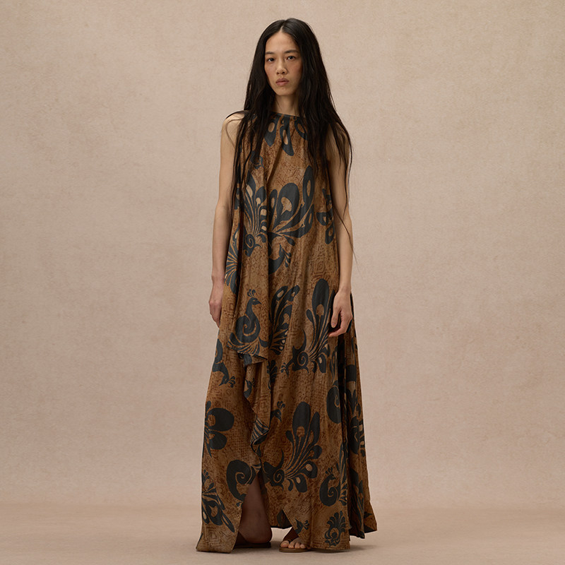 【MORIN KHUUR 牧仁】蓝孔雀图腾印花无袖圆领连衣裙