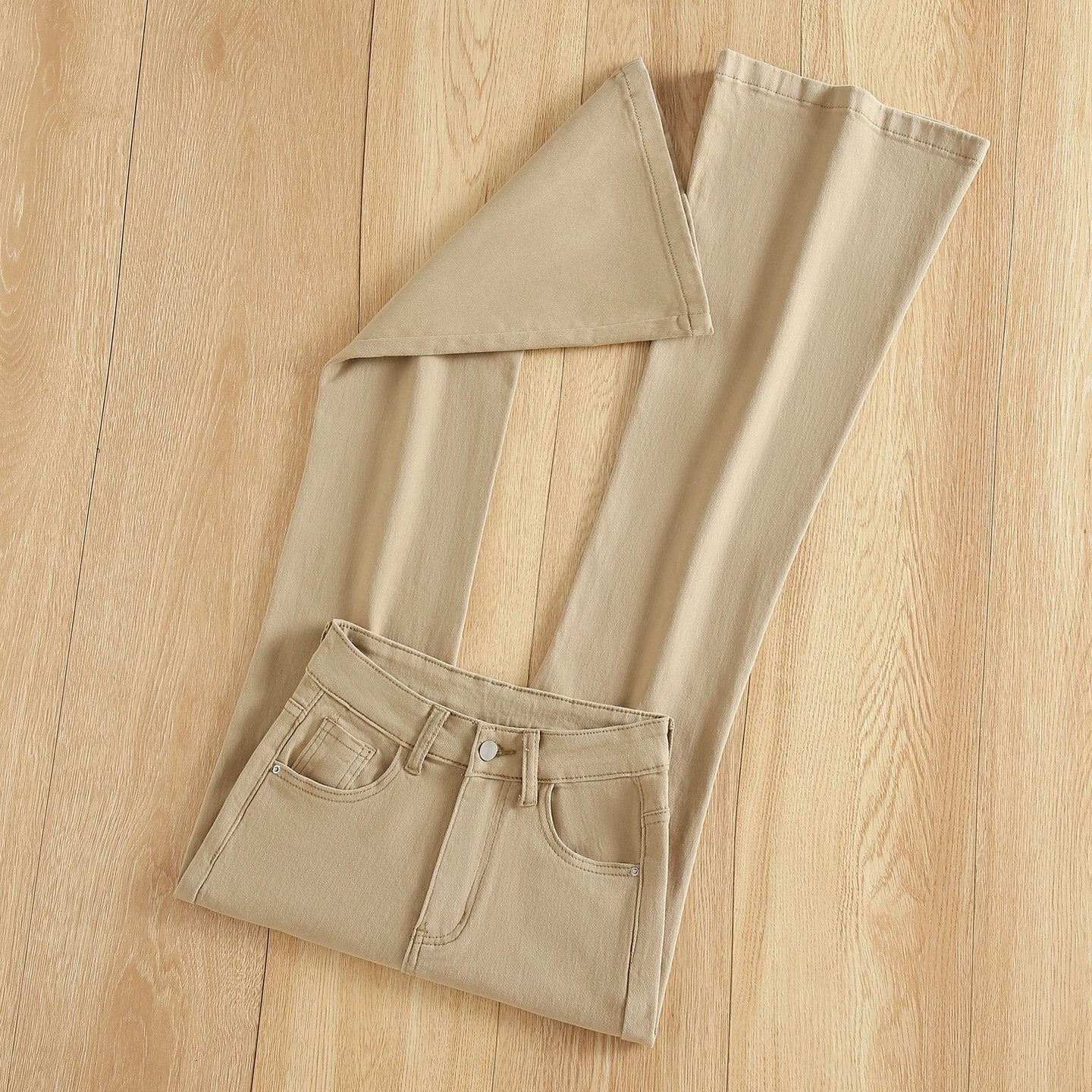 拉夏贝尔卡其色喇叭牛仔裤女2026春季新款高腰修身显瘦弹力微喇裤