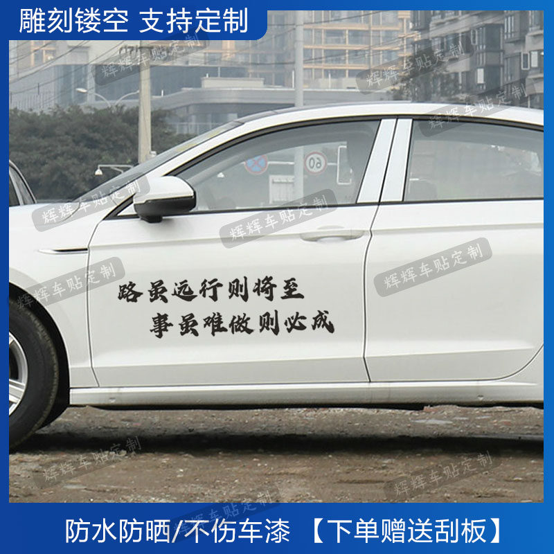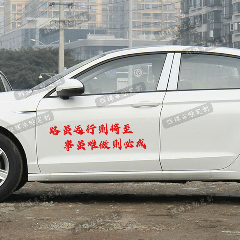 路虽远行则将至事虽难做则必成汽车贴纸个性文字励志创意车身玻璃