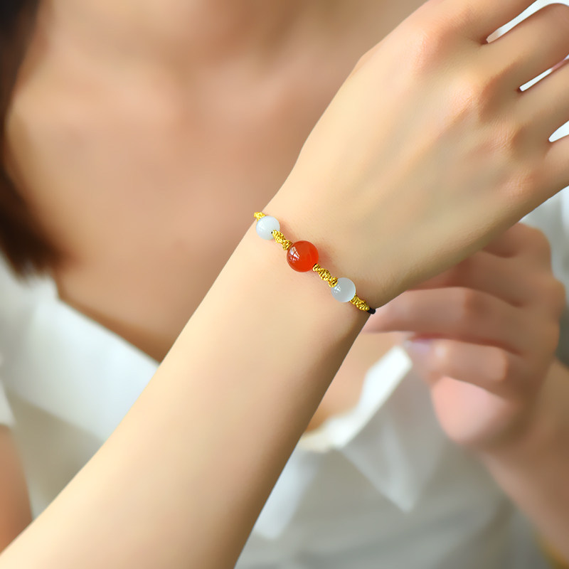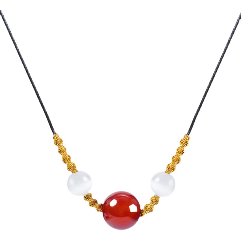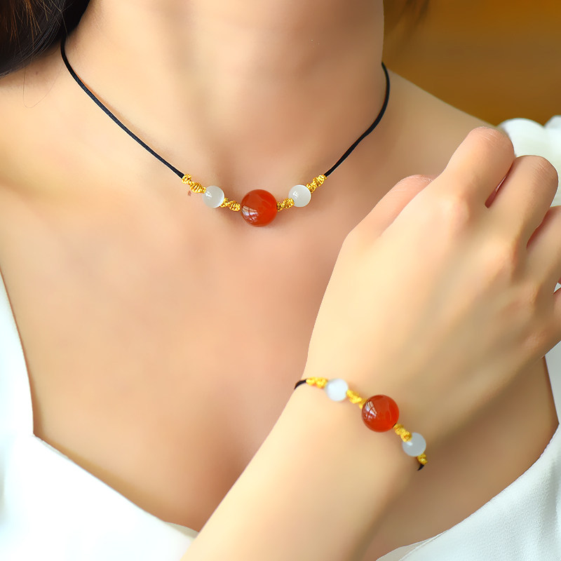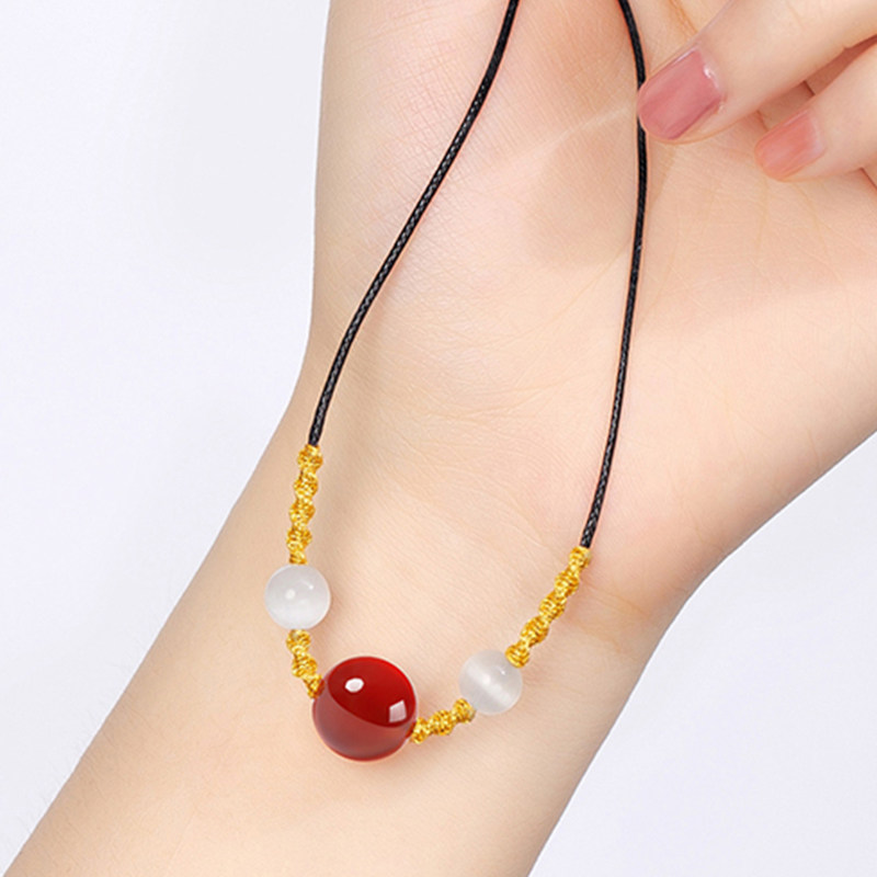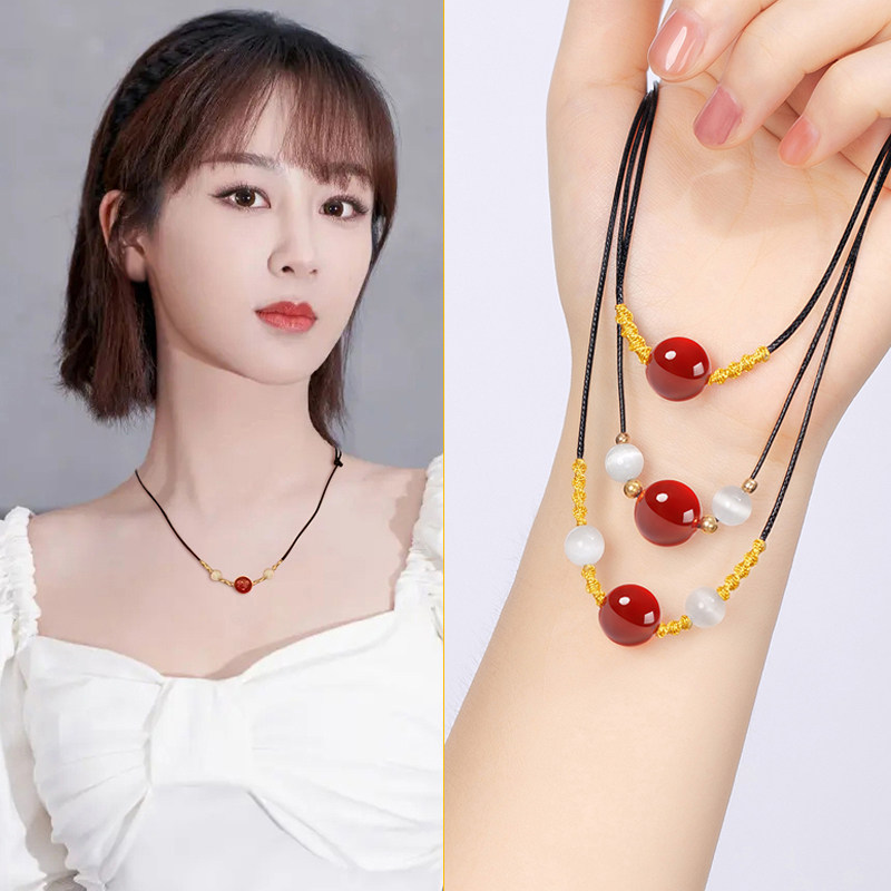 相思红豆手链红玛瑙项链女转运珠编织吊坠挂件装饰颈链网锁骨链