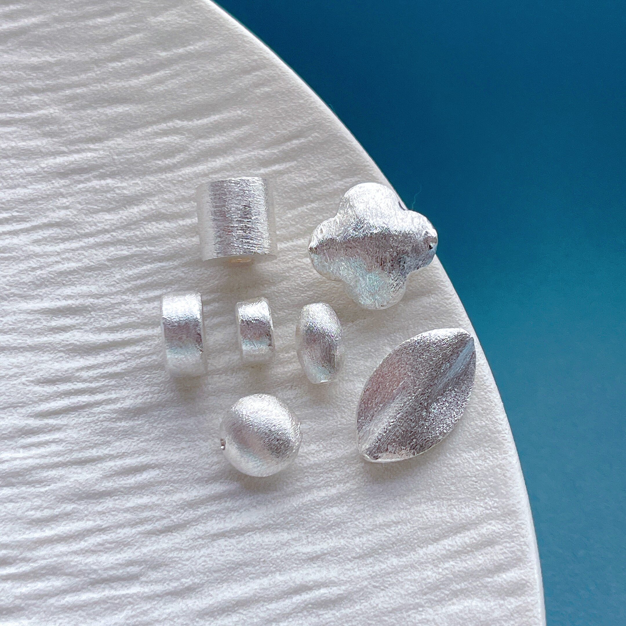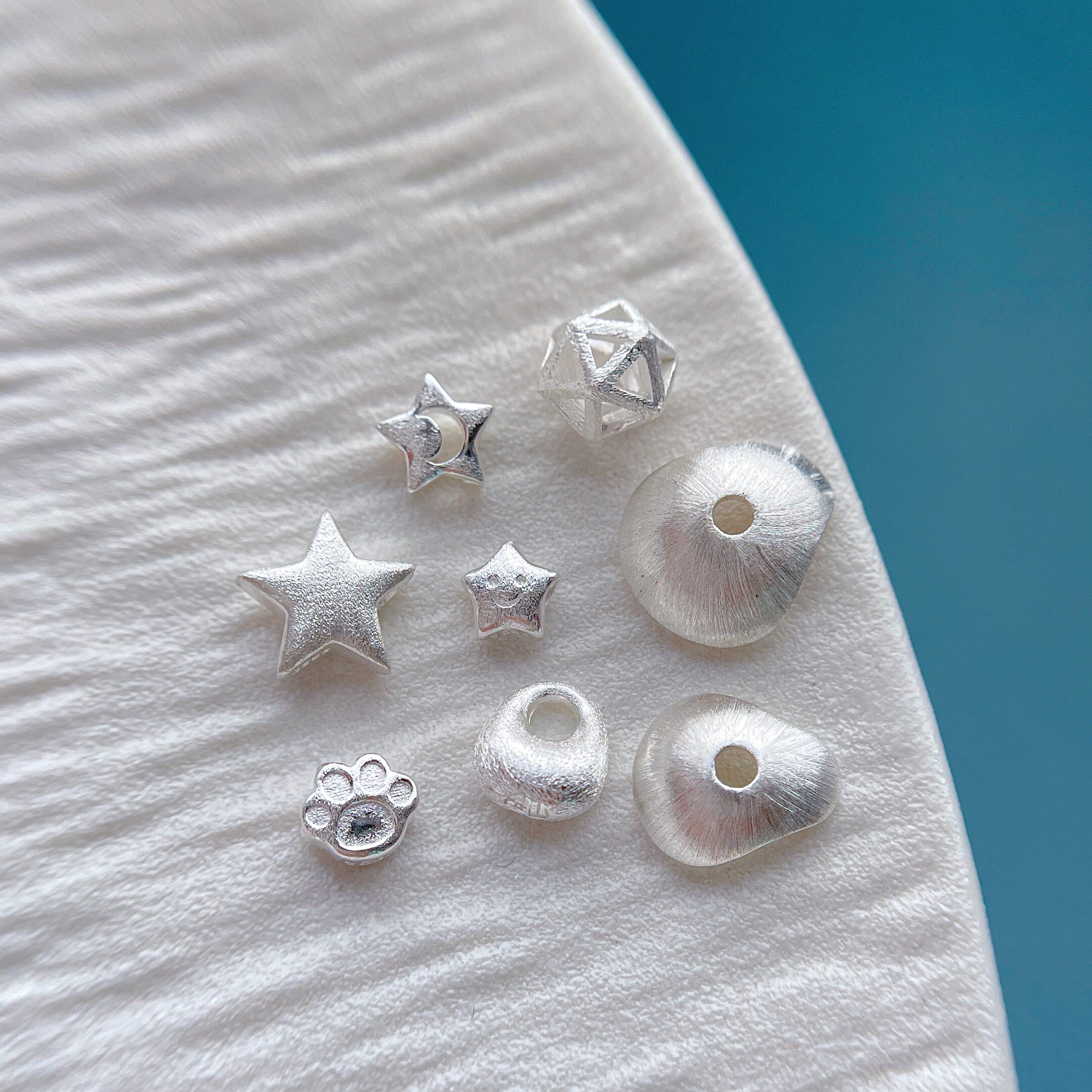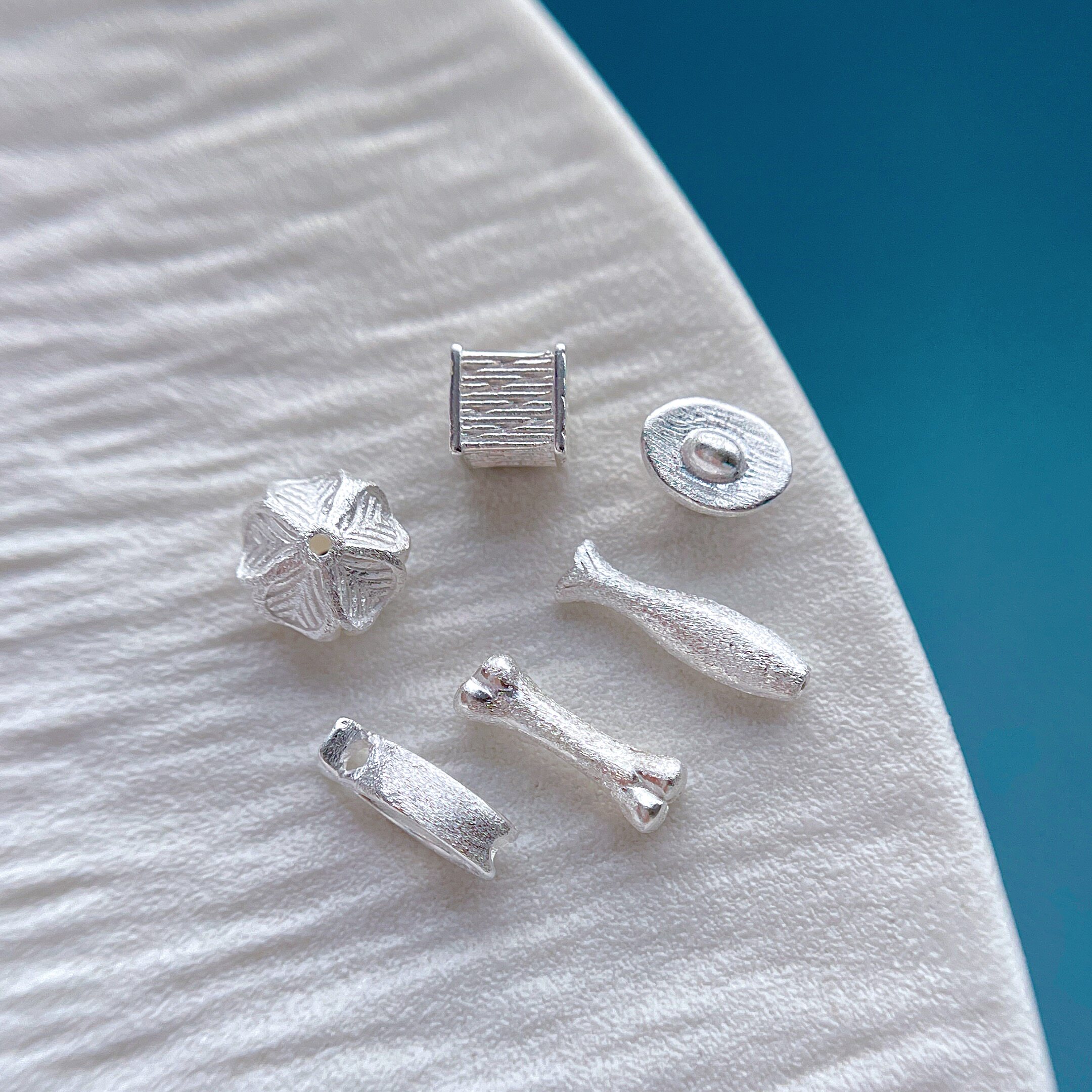 925纯银饰配件拉丝元宝五角星猫爪小鱼骨头花托车轮珠隔珠隔片diy